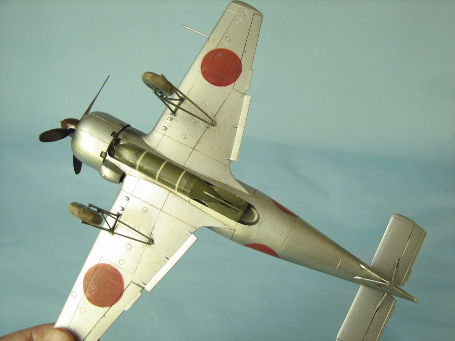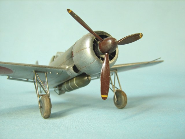 Как уже упоминалось оборудование было предельно простым. В кабине сделано заново кресло пилота, в оригинале оно было из многослойной фанеры, по левому борту кабины выполнена имитация электрокабелей, по правому - трубопровод.. Сделана отсутствующая деталь по правому борту (в районе кабины), подкосы стабизаторов, ПВД из иглы шприца. Декаль использовалась только для оформления бомбы. Окраска модели - «серебрянка» (алюмин. пудра + эмалит + ацетон), нитроэмаль и пастель.