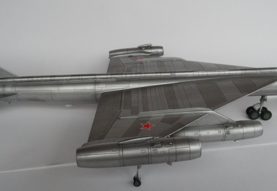 По поводу симметрии я уже написал в начале комментариев, ну а по поводу что он был неокрашен читал , смотрел нет неокрашен, только радиопрозрачные элементы носа и пилотка киля. Как и многие тогда самолеты того времени его аллюминиевые листы покрывались лаком.
