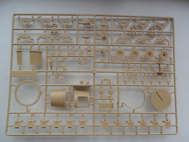 ...Литники приятного кремового цвета,хорошего качества.Проработано всё,включая заклёпки,двигатель,снаряды...По впечатлениям-вау! За эту цену можно было и экипаж приложить,травлёнку и гуси наборные.Но.Из того,что хотелось бы,гуси не наборные,а из пластмассы,но качество лучше винила.Если соберуссь к окончанию сборки(вдруг разбогатею?)приобрету наборные,надеюсь,что у "Шермана" гуси такие же и цена божеская.