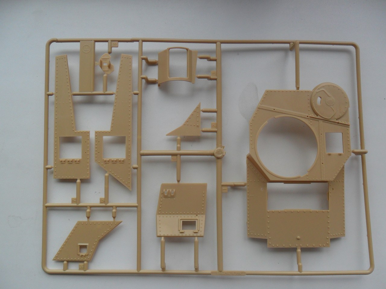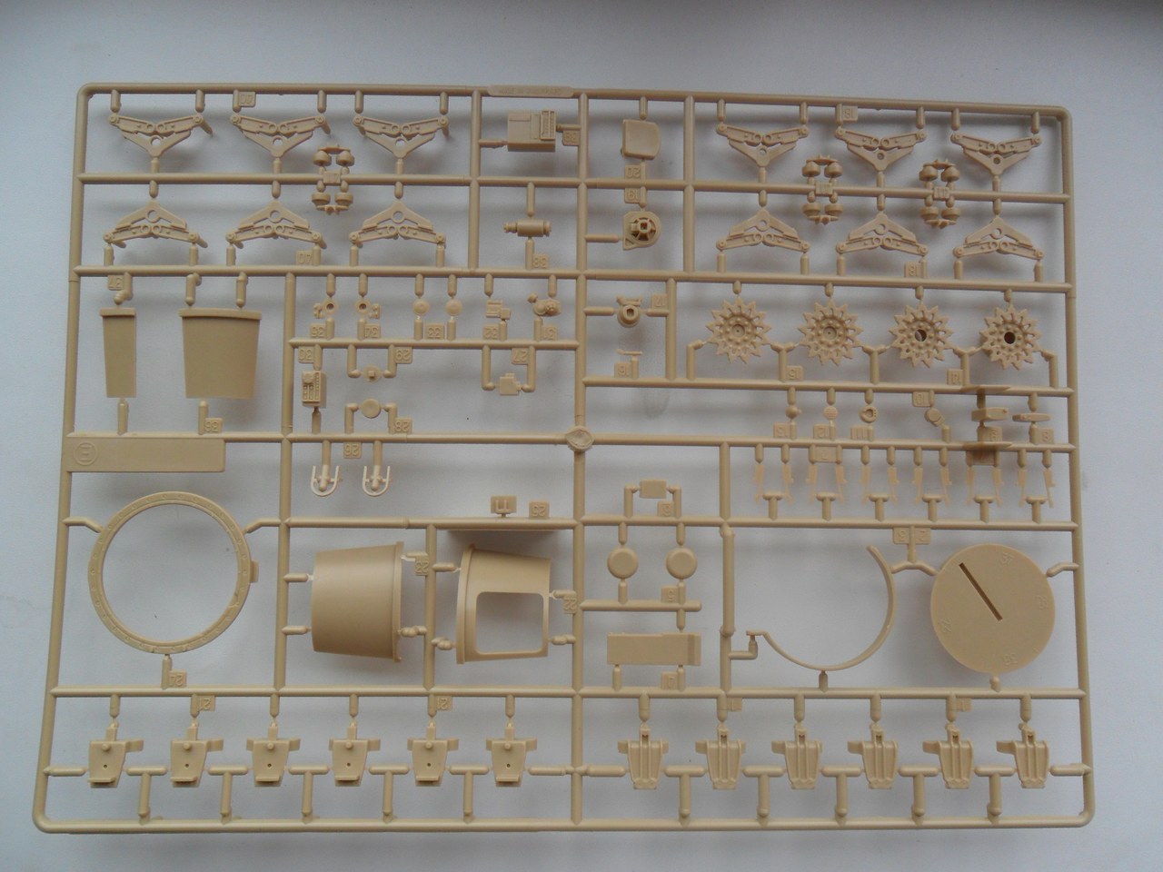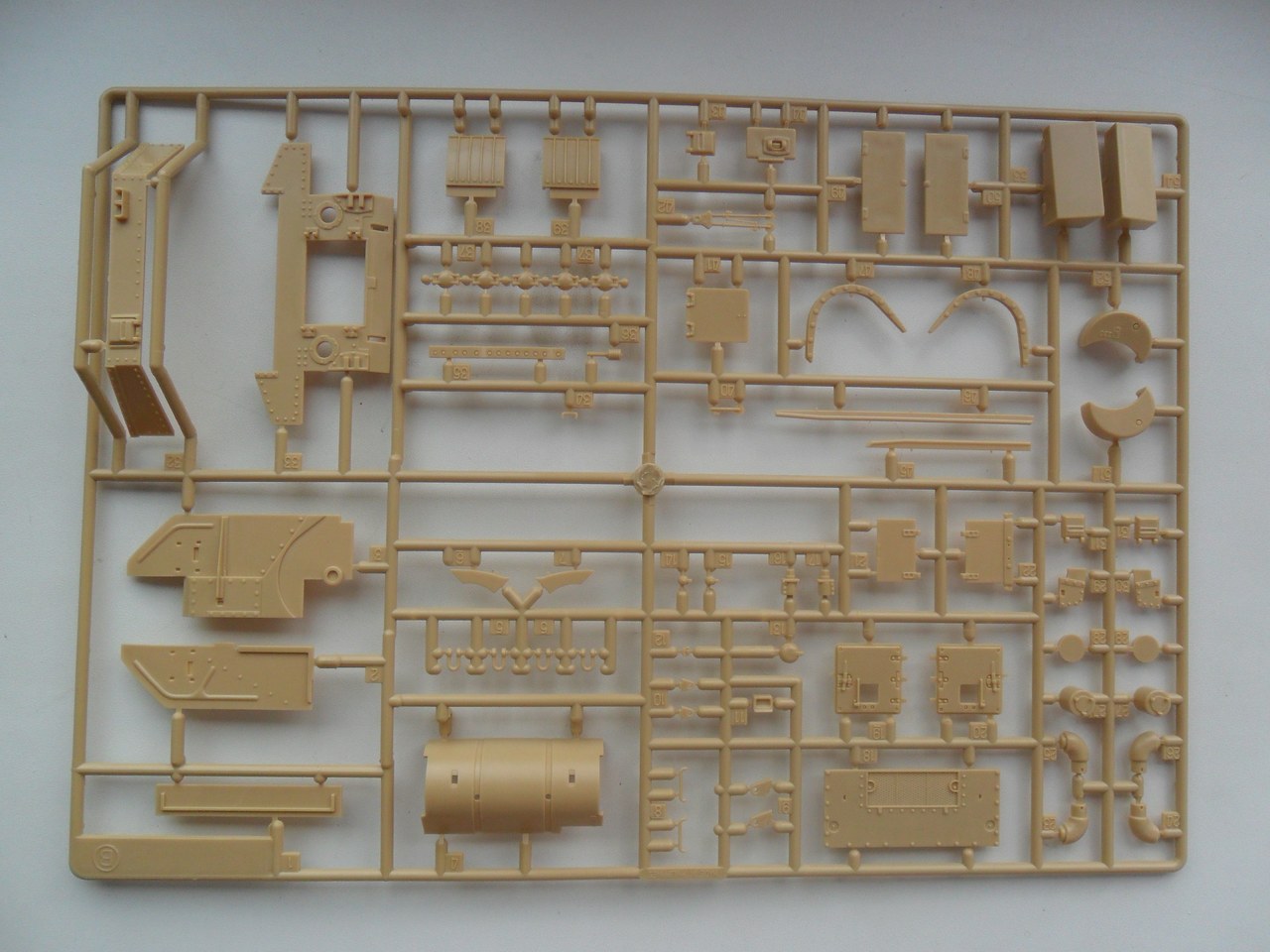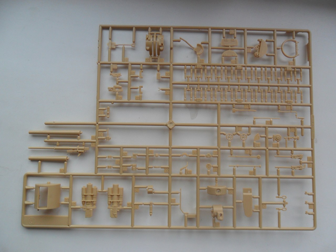 ...Открыв коробку,я обнаружил хорошо уложенные литники,каждый в отдельном пакетике,количеством 8(!)штук,ванную корпуса отдельно,декали на 2 варианта окраски и жёлтый листочек на языке,который не знаю,типа "Варнинг",но не английский,там было полно иероглифов.Также есть инструкция на 20(!)страницах,на первый взгляд,вроде понятная,но перевода не обнаружил,буду упражняться в английском,чтобы не забывать.