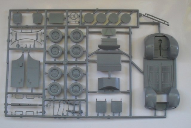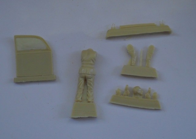 Набор состоит из 1 литника серого цвета, кузова Жука, литника с остеклением и фарами, а так же апгрейда из смолы - солдата и одной двери.