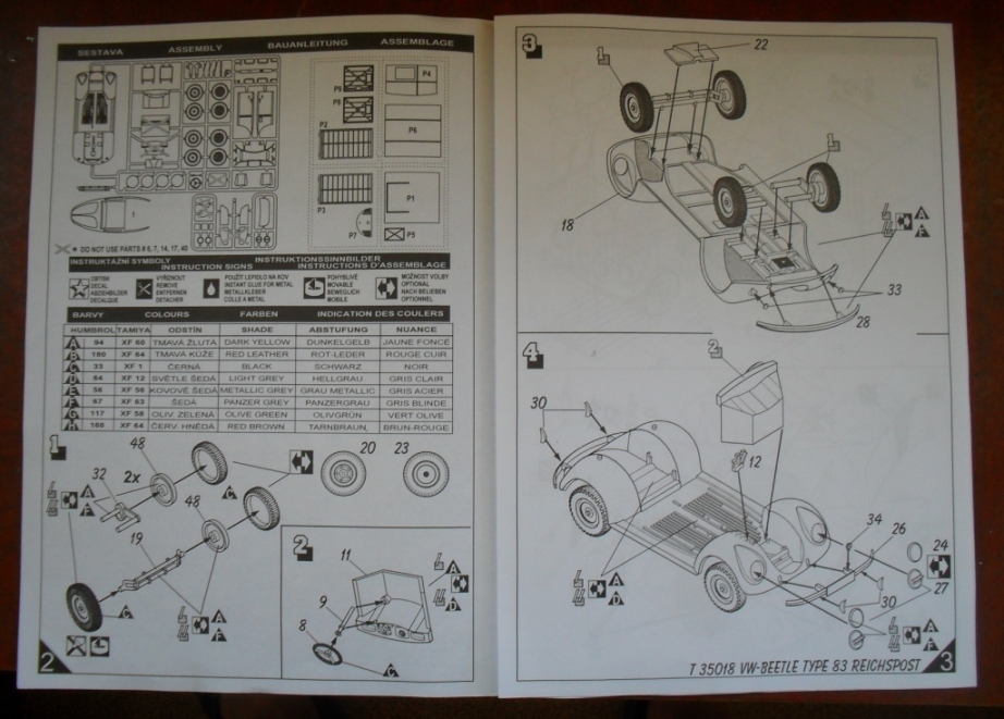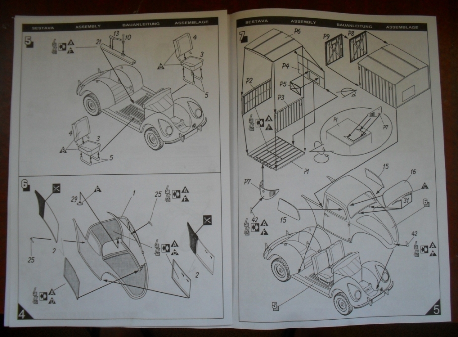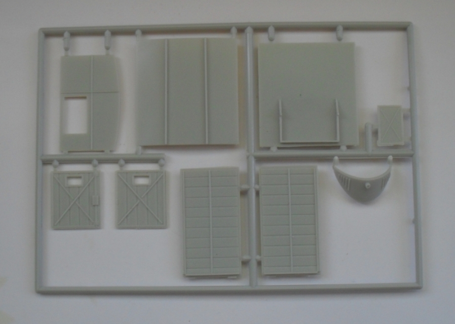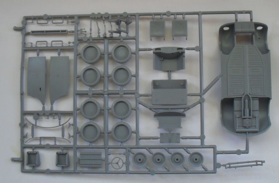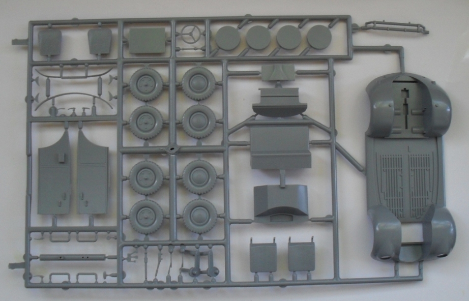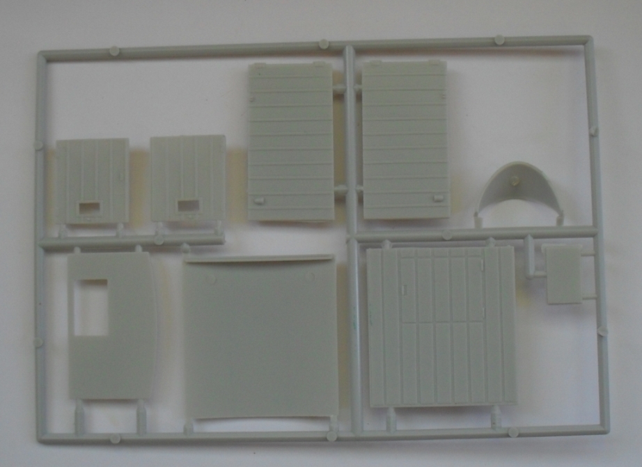 Набор состоит из 1 литника серого цвета, "полукорпуса" Жука, 1 литника светло-серого цвета с кунгом, литника с остеклением.