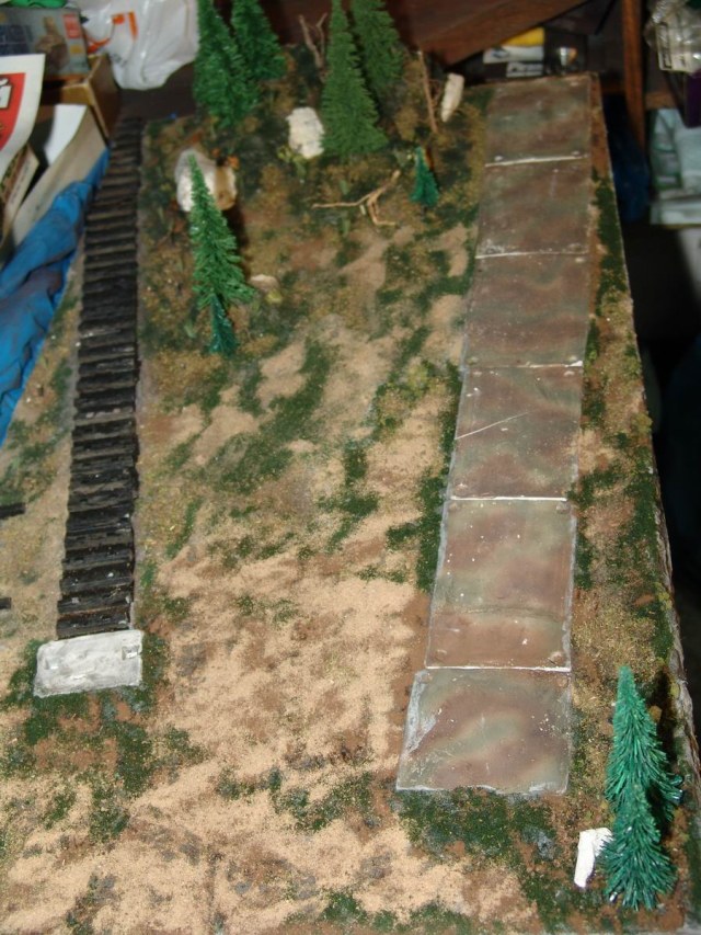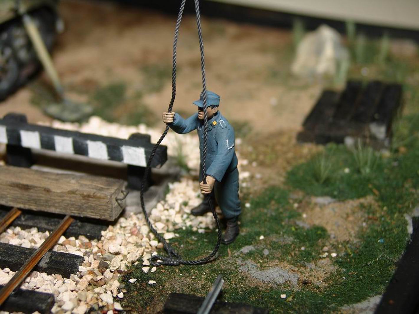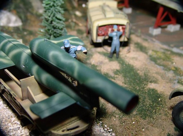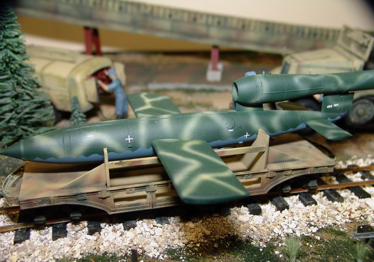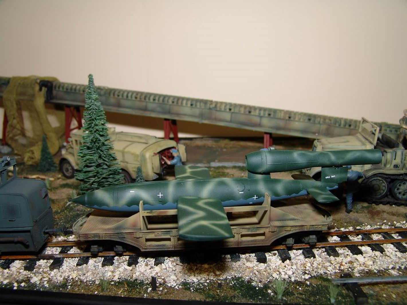 По каналу ВВС был несколько лет назад такой документальный фильм "ФАУ-секретное оружие Гитлера". Там как раз показаны съемки как ФАУ-1 везли на ж.д платформе к точке пуска, что и послужило идеей создания диорамы. А почему? как? отчего? в каком порядке? я собственно голову и не ломал, не ракетчик, что увидел, так постарался и сделать)))