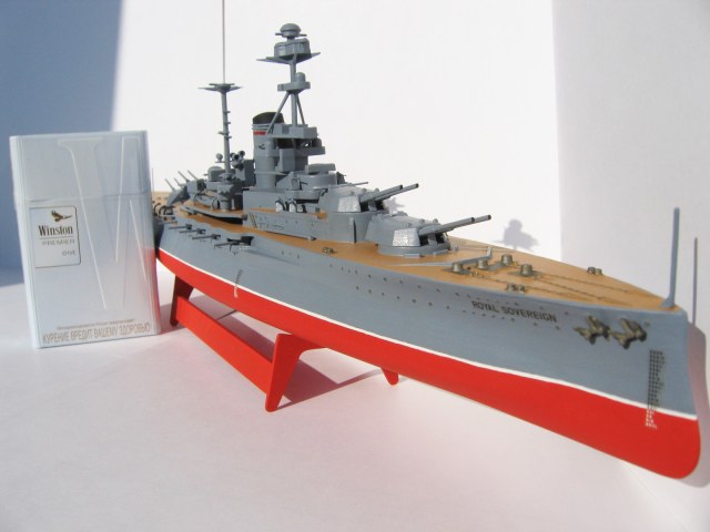 Есть проблема. Это Уорспайт - тип Куин Элизабет, а не Роял Соверен, это раз. Второе это то, что он уже после полной модернизации. Т.е. широкие були, новая надстройка и вооружение