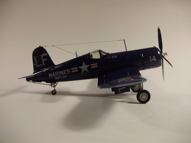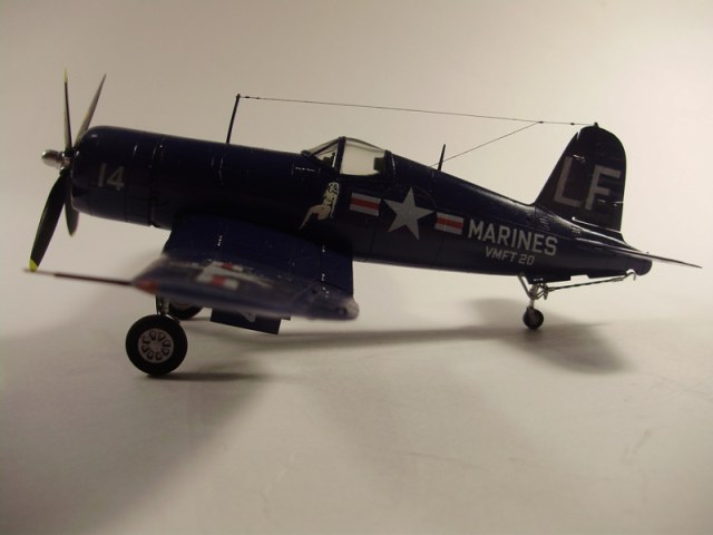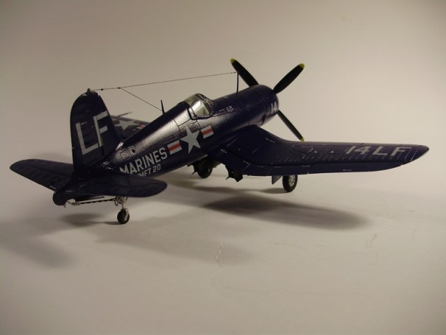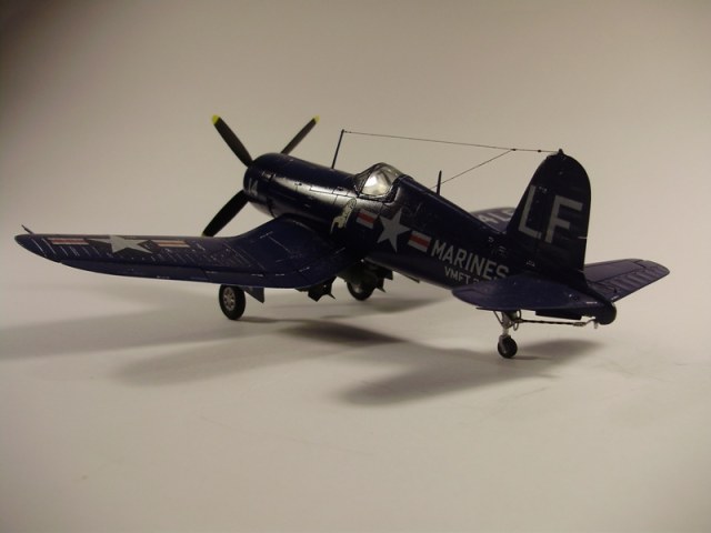 Одна из старых моих моделей. Мачевский Корсар в 72 масштабе. Сделан в 1994 году. На редкость примитивный исходник был))) Переделал и сделал всё, что мог тогда осилить. Самодельные - двигатель, винт, основные стойки шасси, их ниши и створки, задняя стойка, всё что в кабине и т. д.))) Оформление "от фонаря". Краска Ревелл. Не помню, какой номер. Легла немного "с шагренью". Немного не угадал с цветом внутренних поверхностей. О том, что у 4-й модификации профиль носовой части фюзеляжа был овальный узнал несколько позже...