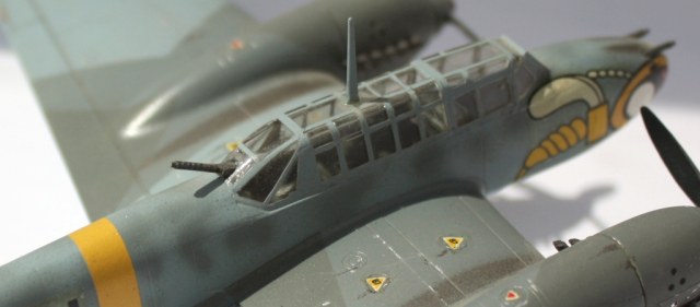 Первая моя фуджимовская модель. Досталась некомплектной – поэтому и смог купить её во время одной из моих командировок в Москву в клубе стендового моделизма на «горбушке» с большой скидкой в 1994 году. Тогда же модель и собрал. Из всей литературы – откопированная мною в Государственной публичной научно-технической библиотеке на Кузнецком мосту статья из «AIRInternational» да инструкция. Краски – нитра, цвета мешал сам. Пулемёты из игл и сеточки от кинескопа. Ниши, кабина, фара – самодельные. Колёса – «Экипаж».