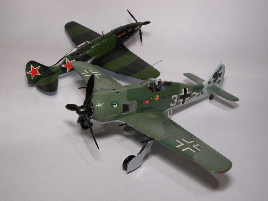 Фокке - Вульф 190 А8 от Звезды. По моему очень неплохая модель. Собирал полтора года назад. Красил кистью, красками всё той же Звезды. Сверху покрыл акриловым художественным лаком. Расшивку не выделял и следы эксплуатации не наносил, потому что пока не умею, да и страшно модель испортить.