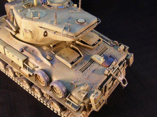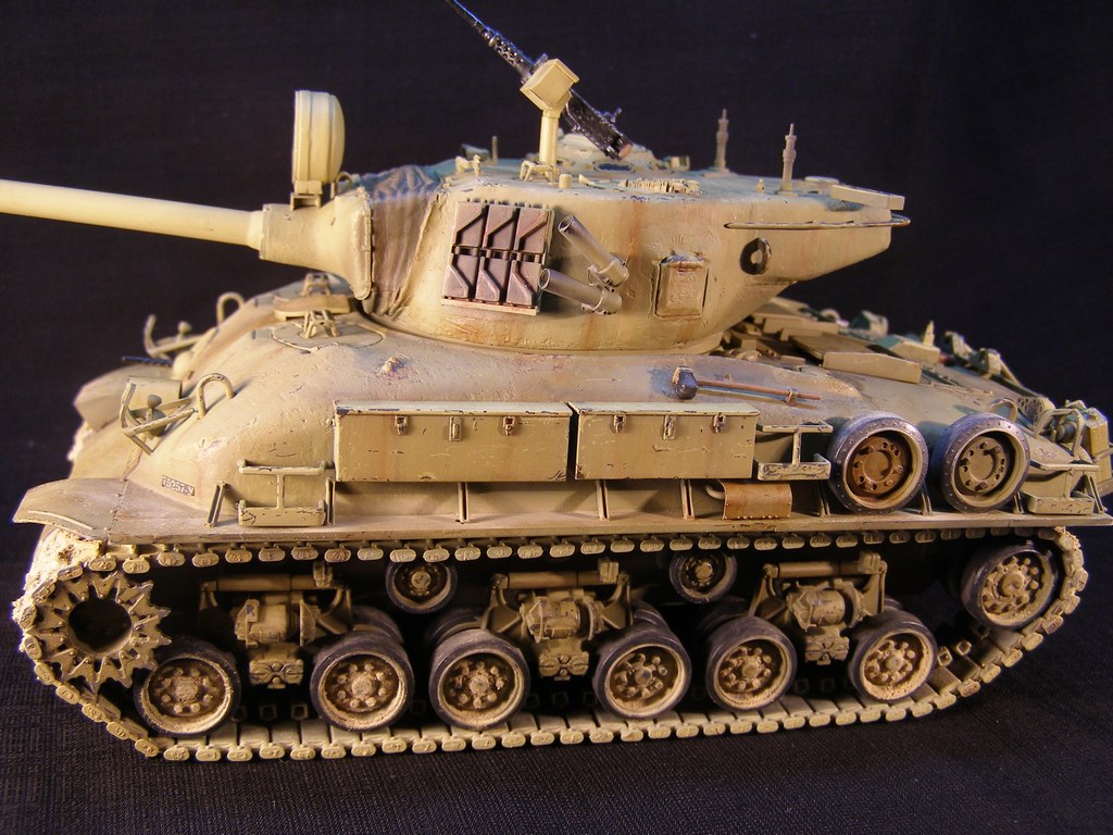 Спасибо большое за конструктивную критику. Так как много раз читал о том, что траки первоначально красят не в ганметал, а в цвет, грубо говоря, земли. Вот тут я и попытался так сделать и задул песочным. Вида не получилось.( беговую дорожку красил сталью, на фотках погано видно. Никак у меня не выходят нормальные гусеницы, все время что-то не так. А по торцам траков идут следы от литников. тут даже и пытаться оправдываться не буду, сразу не сделал, потом гусеницы склеил, и так чтот и протянул....