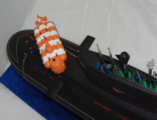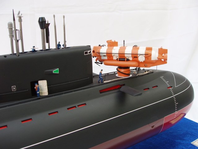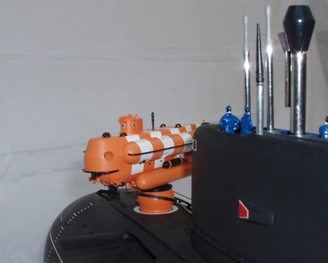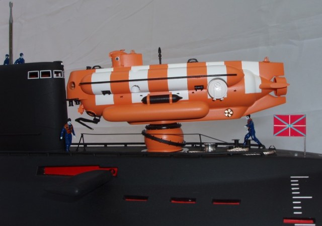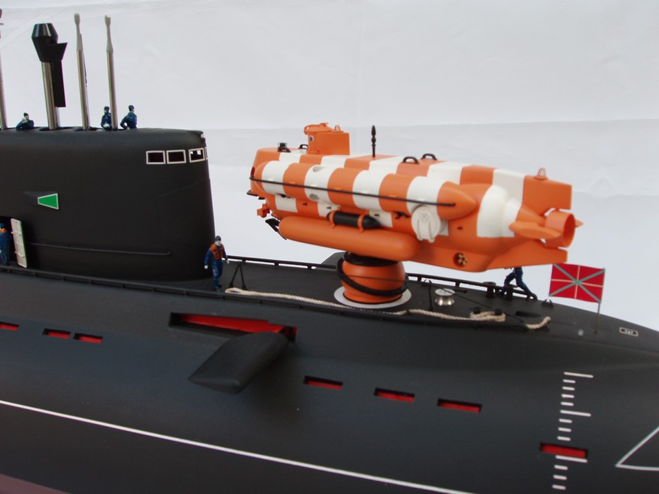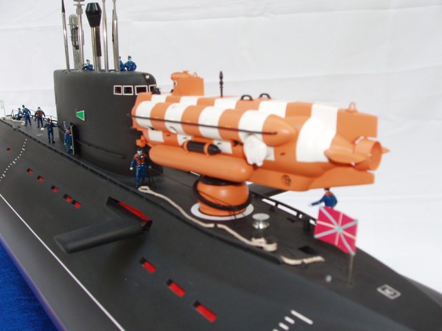 Модель подводной лодки проекта 877 с глубоководным аппаратом "Бестер". Выполнена в масштабе 1:72. Экипаж переточен из набора Prezer масштаба 1:72. В альманахе "Тайфун" видел фотографию Варшавянки с глубоководным аппаратом на палубе, правда не с этим.