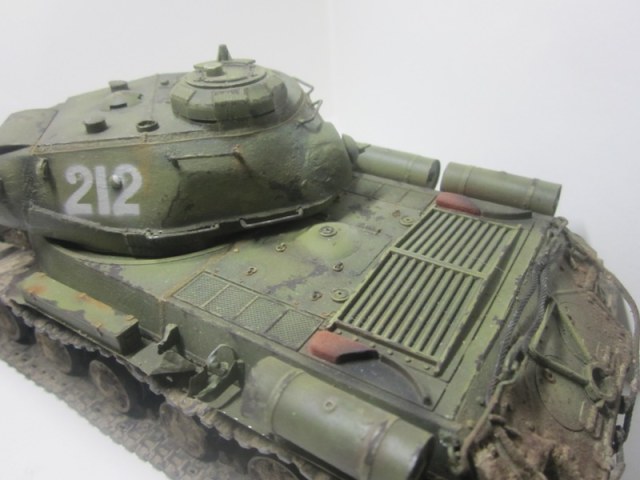 Вообще тут грязь только на гусях и сзади, а по бокам над гусями её нет. Ржавчина только сзади на башне. По мне маленькие подтёки ржавчины на корпусе и башне смотрелись бы хорошо.