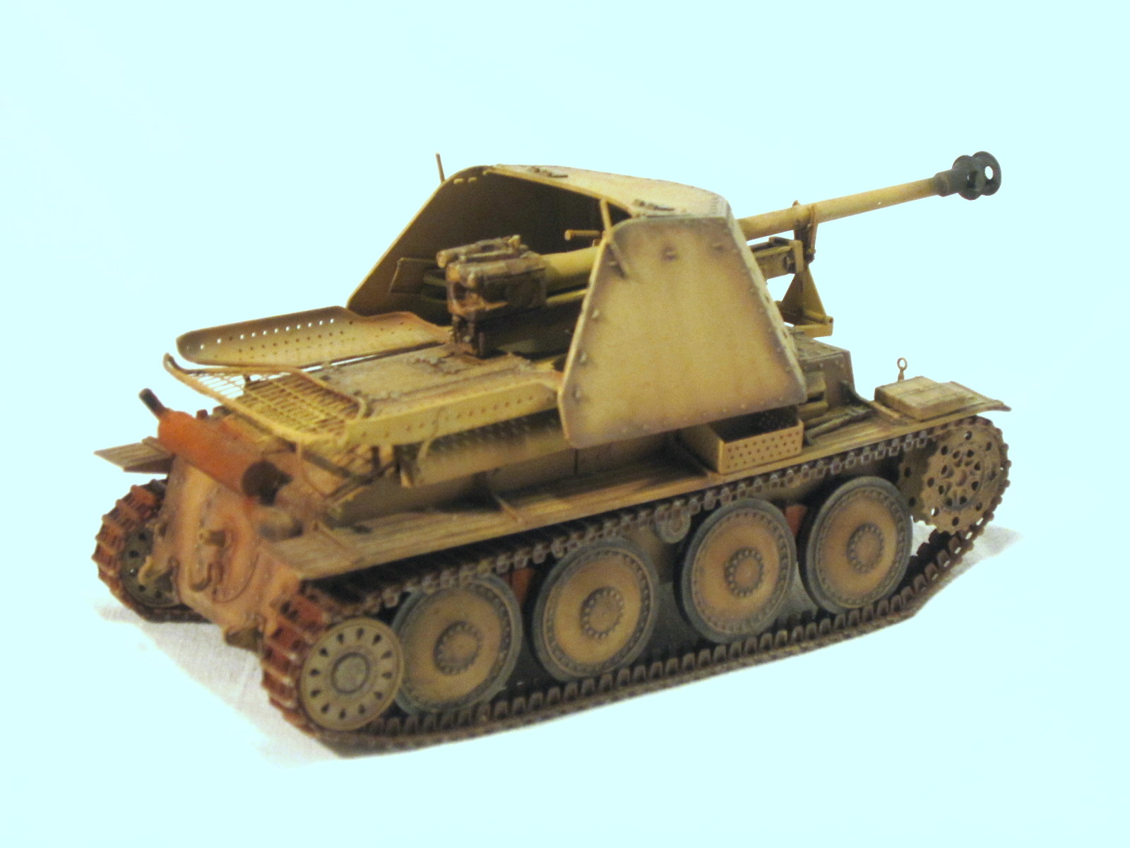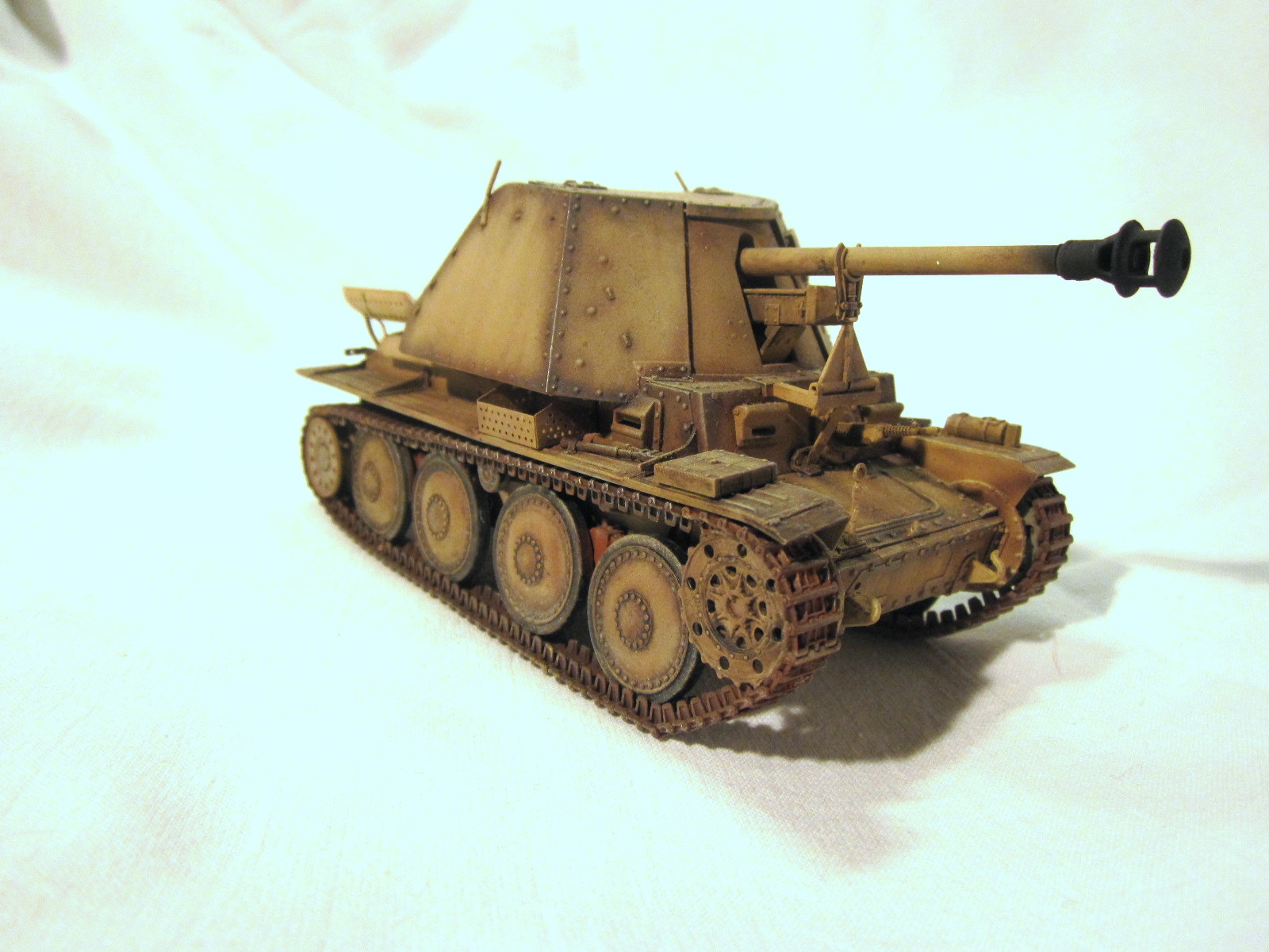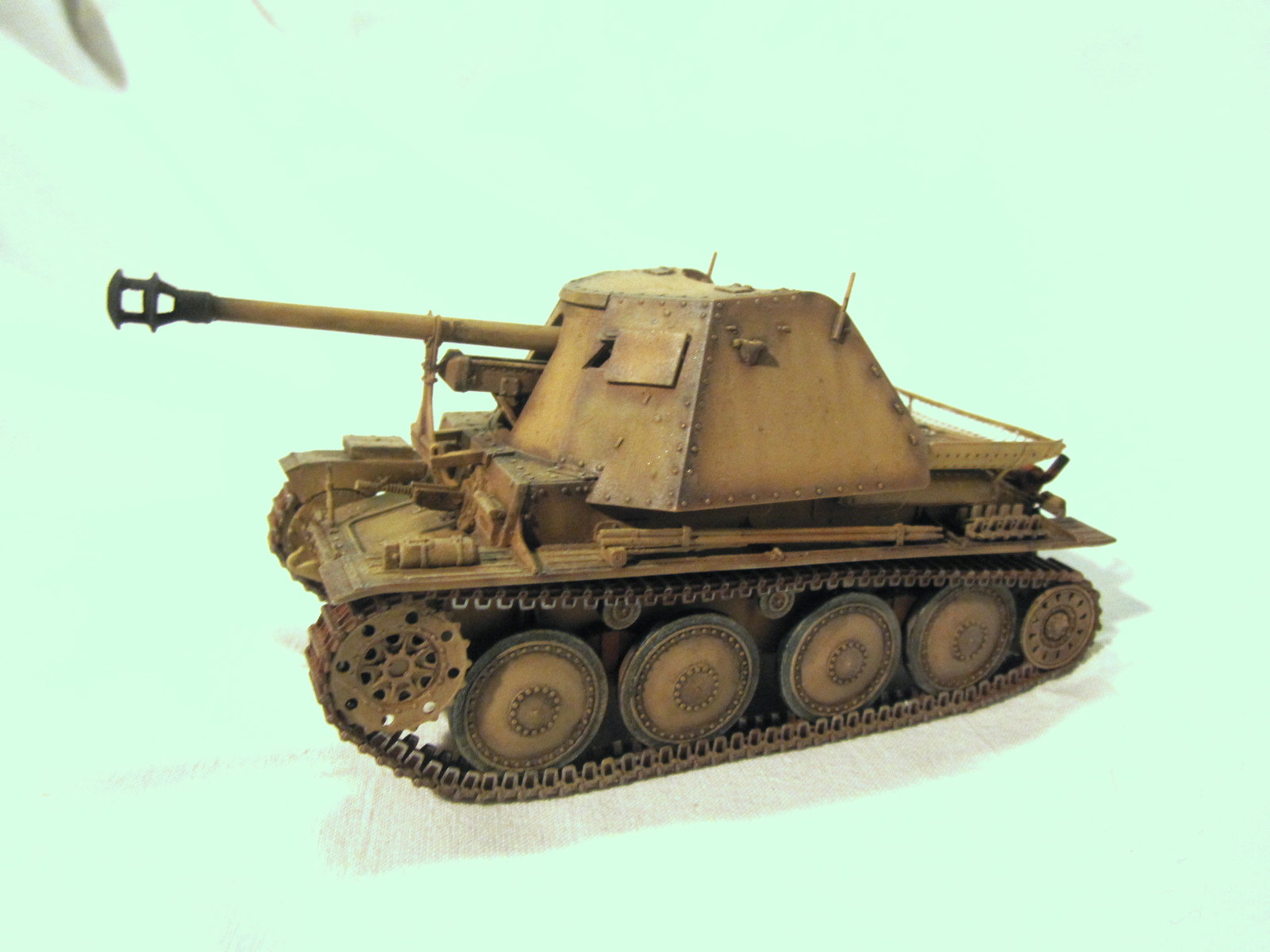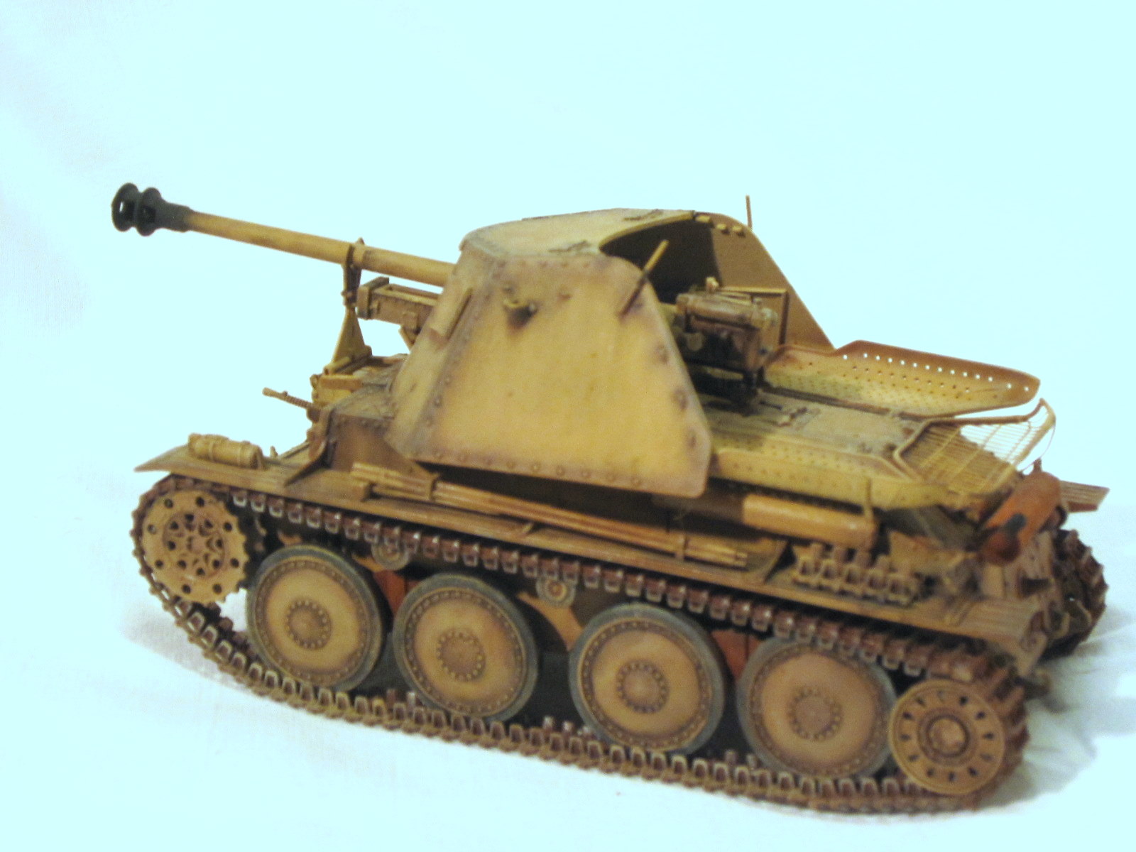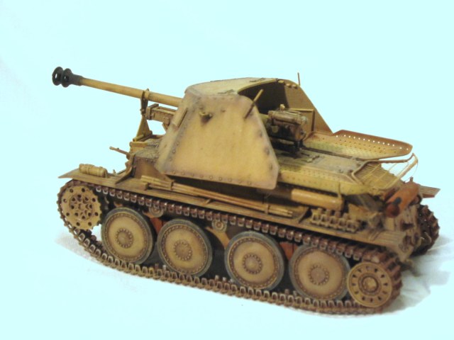 Очень хороший "мардер", жаль фоток маловато, еще бы боевое отделение показать. Единственно, по-моему, ствол пулемета в базу не красился, да и ствол, кажется, надо рассверлить или прочистить от попавшей краски.