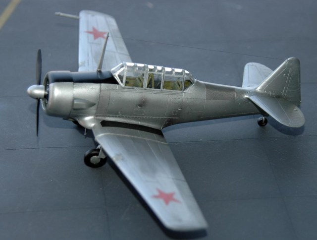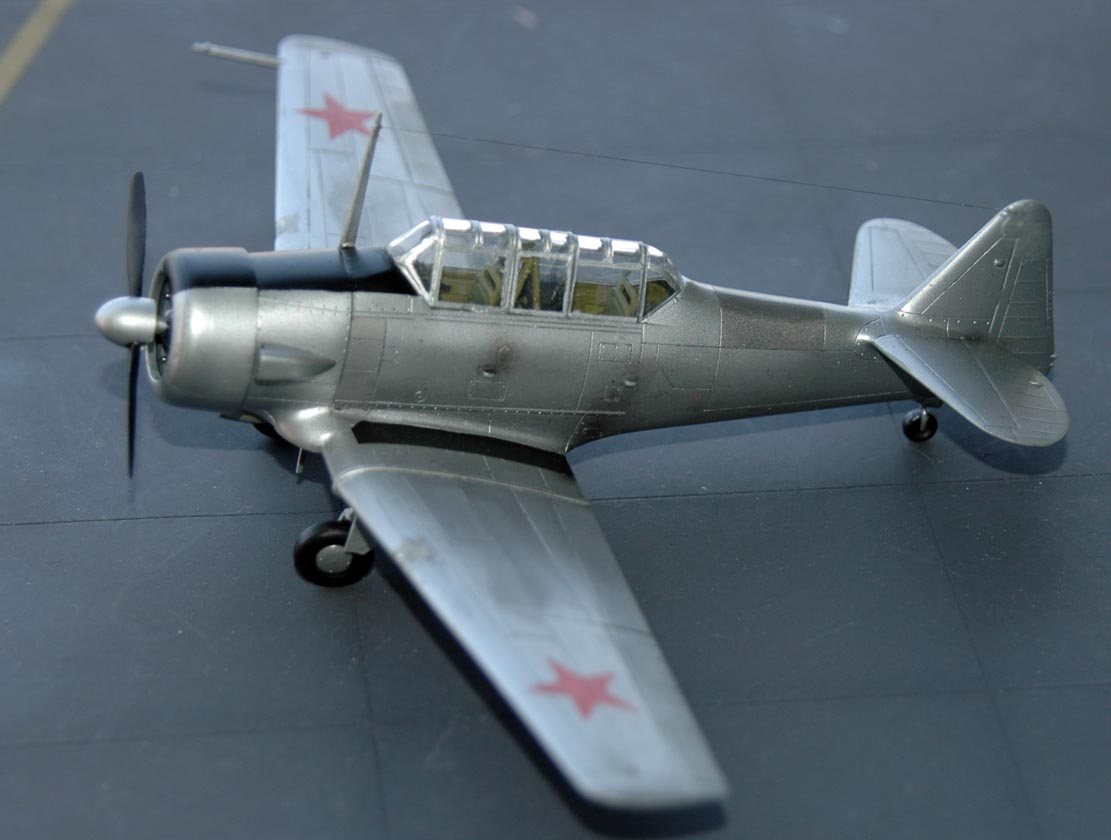 Модель классная! И немного истории. «Тексаны» распределили в основном между запасными бригадами и полками, занимавшимися переучиванием на импортную технику, а также в летные училища. Большая часть их поступила в 6-ю запасную бригаду. Отдельные самолеты попали в другие места, в том числе поединично - в строевые истребительные полки. «Тексан», испытывавшийся в НИИ ВВС, так там и остался. Его использовали при испытательных полетах как самолет сопровождения. При этом на месте стрелка сидел кинооператор. Несколько машин получил полк инспекции ВВС. По крайней мере один самолет достался учебному полку Военно-воздушной академии, базировавшемуся в Монино.