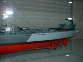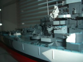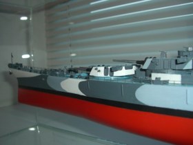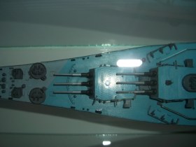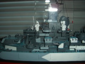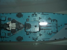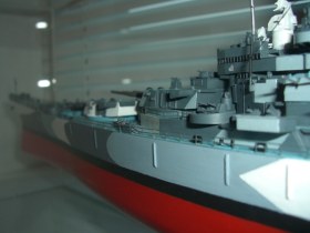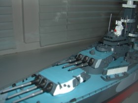 Линкор красавец! Размеры впечатляют. Покрашен для кисти очень хорошо. А вот фото, уж простите, не понравились. На таком фоне все сливается. Часть фото не в фокусе. А такую достойную работу желательно показать в полной красе!