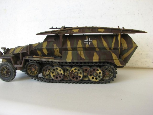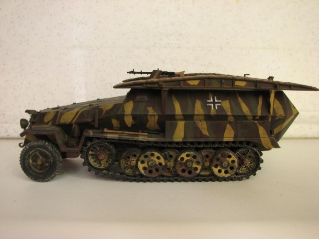 Из модели можно было выжать больше, тем более что это самый точный ханомаг из всего того что есть. С гусеницами хитрость. Правая 56, траков левая 55. А стыкуемость у него таки да омерзенейшая. Тонировка пола как -то не айс. Сам в свое время с таким возился, только в варианте миномета. Если интересно могу ткнуть ссылку на блог.