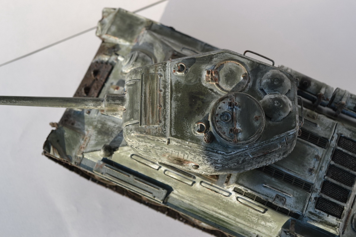 Приветствую! Косяки конечно есть, но куда без них. Например, как уже сказали ящик ЗиП - послевоенный (нужно удалить выштамповки), доп. топливные баки и крепления не очень получились, также крышка МТО не должна быть такой "угловатой", нету сварного шва на башне. В случае пристрастного подхода можно еще придраться к тому, что нету болта-стопора на маске пушки, а так же нету некоторый болтов. По покраске мне очень даже понравилось, модель в целом не плохая. От меня 5 с большим минусом.