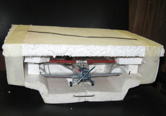 Перепил известной модели от Моделиста(см.Сказки-Ан-2сх).Слегка вогнан в геометрию,но-без фанатизма.РТШ и крыльчатка мешалки-самодельные,расчалки и антенны-нить для биссера.