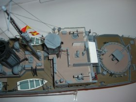 Модель для такого масштаба и таких размеров слишком просто и упрощенно выглядит. Покраска плоская и местами непонятная (серебряные стволы? Палуба двух разных бежевых оттенков?), детали упрощены до безобразия и все в сумме больше похоже на 350-й.