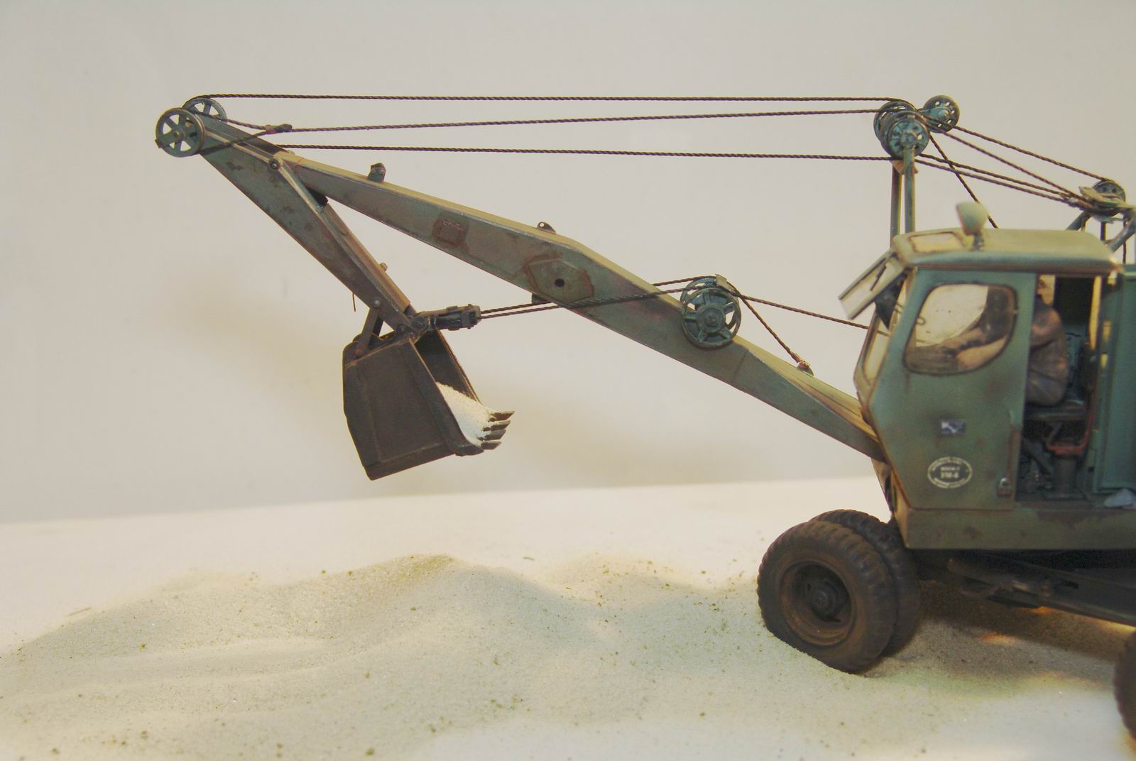 Выношу на обсуждение модель колесного экскаваторв Э-302Б. Экскаватор выпускался Ленинградским и Калиниским экскаваторными заводами с 1957 до начала 70-х годов. Рабочая часть экскаватора ставилась как на гусеничный ход, так и на армейский автомобиль КрАЗ-214 (255).