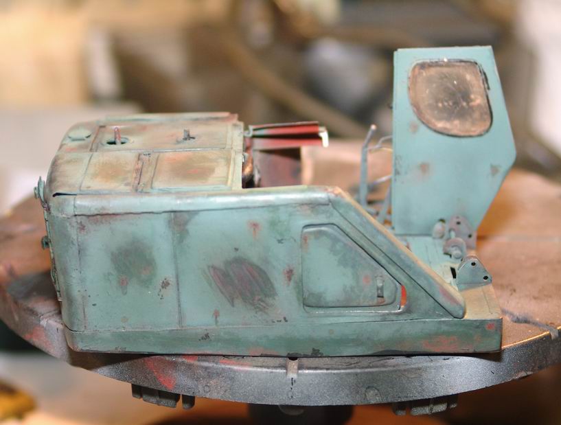 Да, краска Тамия, с последовательным нанесением нескольких слоев (каждый более светлее предидущего), немного художественного акрила (ржавчина и сколы) и остальное тонировка сухой пастельной пылью.