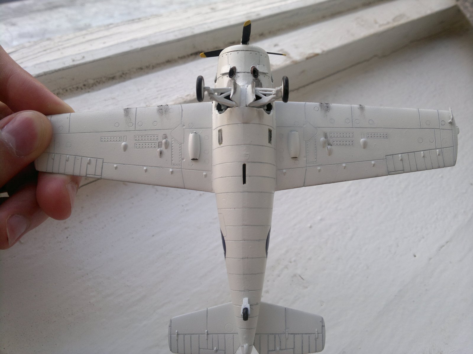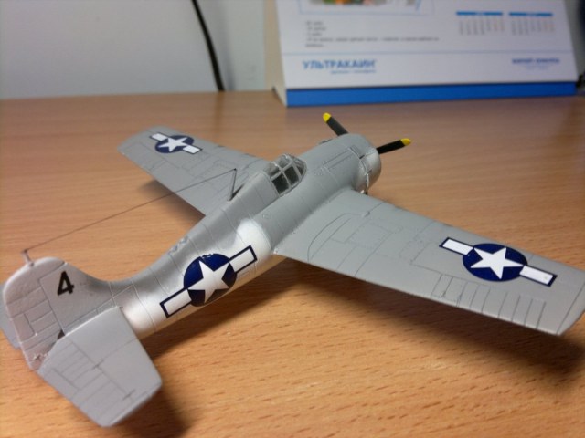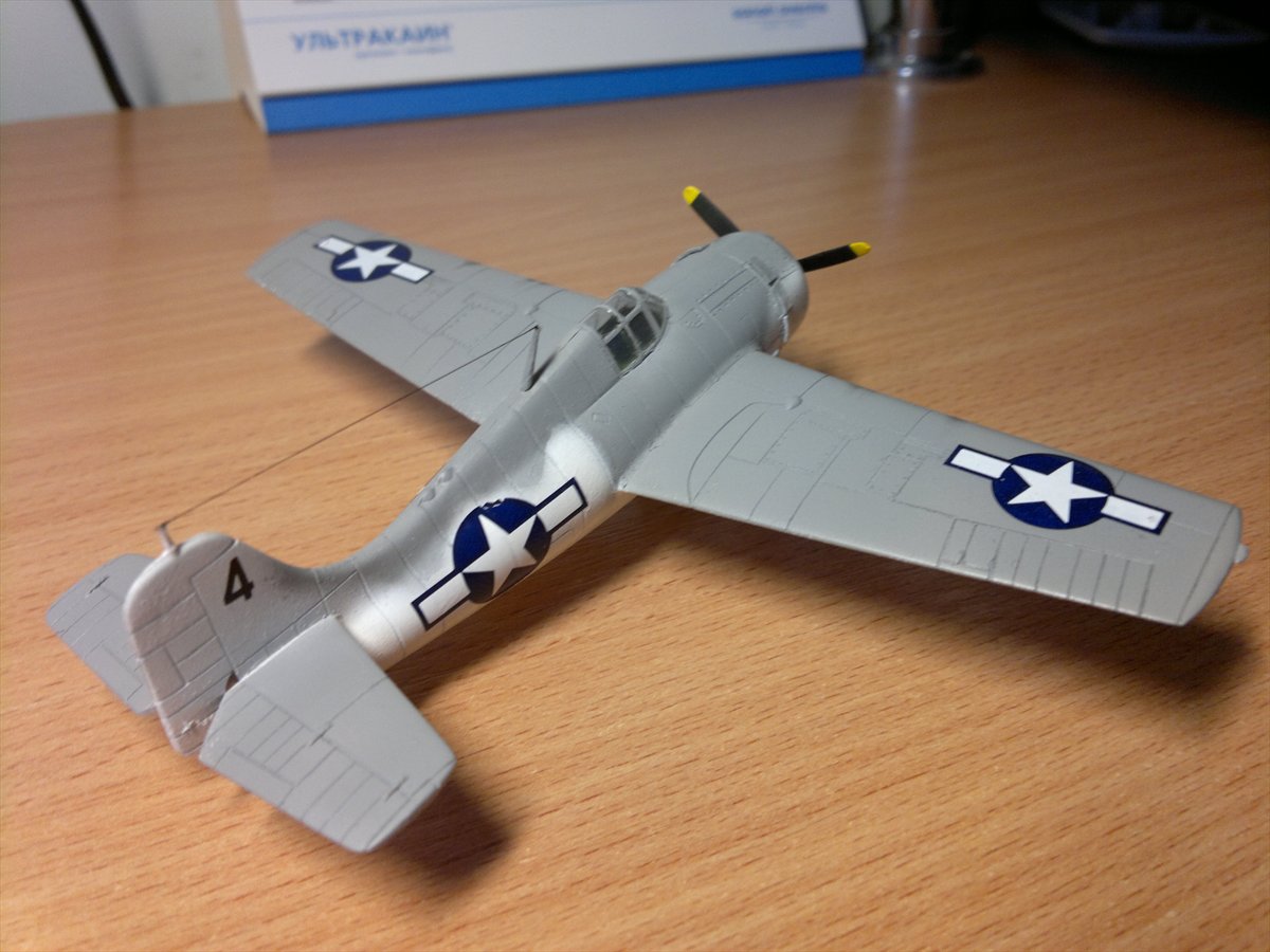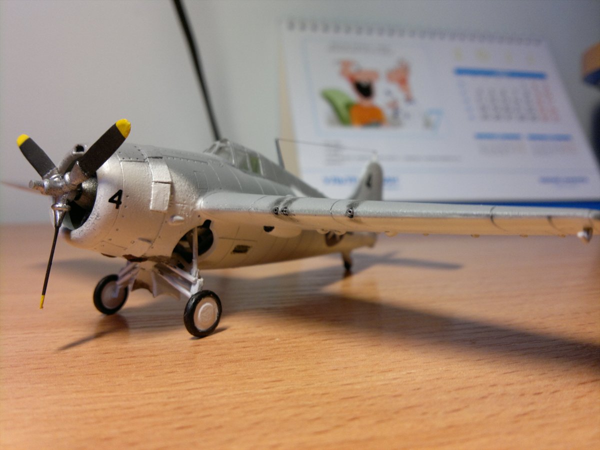 Внесены изменения: пулеметы сделаны из иголок, самодельные створки капота, створки ниши шасси,выхлопной патрубок.