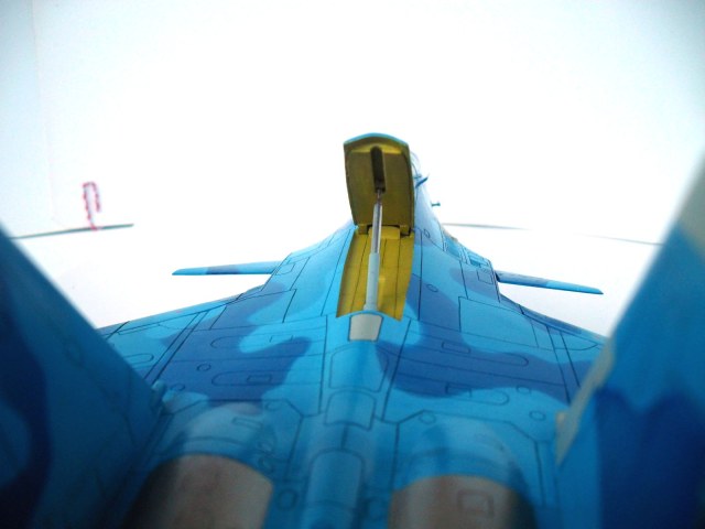 Миша,у меня на него столько ночей и нервов ушло что когда покрасил и поставил на полку зарекся к нему прикасаться.Один раз ребята уговорили отправить на выставку в Нижний Новгород.После этого все на прикол и длительное хранение.Может когда соберусь и сделаю Су-33 почти настоящий от Хасегавы.А этот со всеми его косяками пусть стоит как памятник двум годам бессонных ночей.