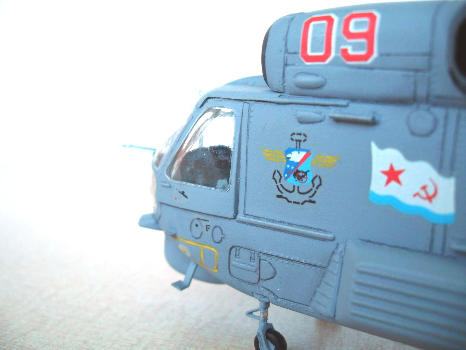 Советский противолодочный вертолет был создан в ОКБ им.Камова в конце 70-х годов в интересах флота.Предназначался для поиска и уничтожения подводных лодок вероятного противника и ведения разведки.Благодаря соосному расположению несущих винтов и складывающимся лопастям помещался в ангарах вертолетоносцев. Модель собиралась в 2007 году.Добавлены скобы ручек и поручней,жаль не видно оборудование кабины экипажа и приборного оборудования из за толщины остекления.Красил Тестером,расшивку выделял карандашом.Декали из журнала Стендовый моделизм.С фотографиями пришлось повозится в фотошопе.Смотрите,критикуйте,готов ко всему.