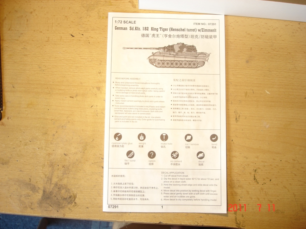Итак набор отлит из серого пластика,немного облоя утяжин нет,деалировка хромает на две ноги так как будто этот КТ по ним прокатился.Вся мелочь отлита вместе с корпусом,фишка набора цимметрит сделан очень уныло,думаю я часа 3-4 я с баночкой клея и тянутым литником добился примерно такого же резултата(похоже просто на сетку) Цимметрит на драконоском бергтигре мне понравился гораздо больше.