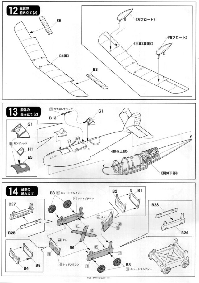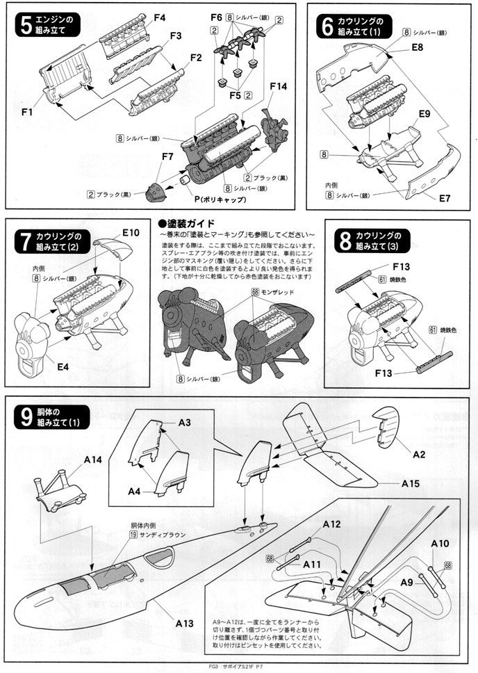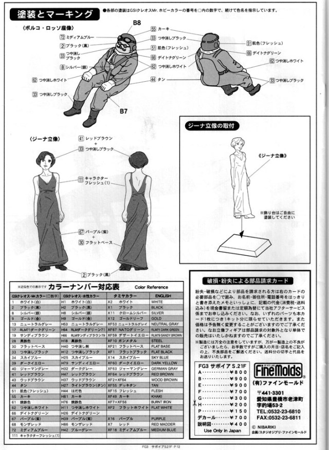 Инструкция подробная, книжкой, но вся на японском. Впрочем, это не проблема, все помечено цифрами и буквами. Список красок при желании покрасить самолет вручную приведен на последней странице.