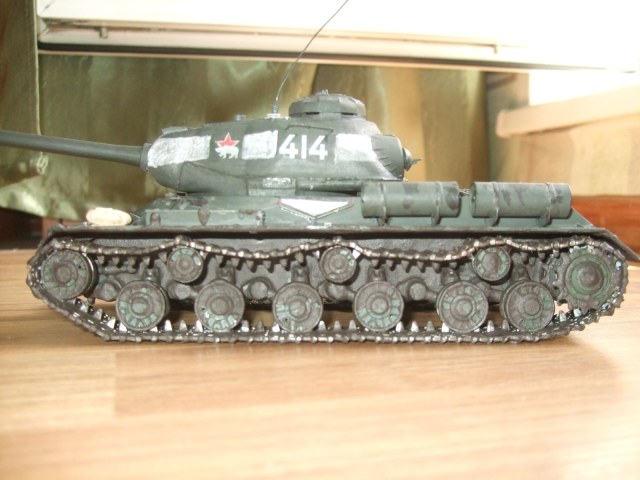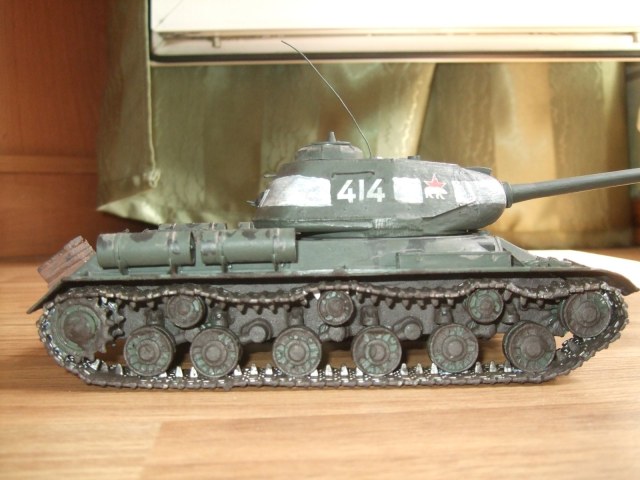 а где это вы увидели на исах такие огромные номера на башне??? грязь похожа на манную кашу.. да и вообще не научившись толком красиь берётесь за грязь это тоько больше портит модель! почему крюки с башни держат трос? да и трос это жесть убрать его!! да и где вы видели треугольную пилу)))) как ей пилить то)))) буксировочные серьги просто лежат на полке ни чем не закреплённые нет ни фары ни ревуна(( ещё весь танк как долматинец в пятнах)) это наверно следы гсм? по видемому масло брызжит из всех щелей