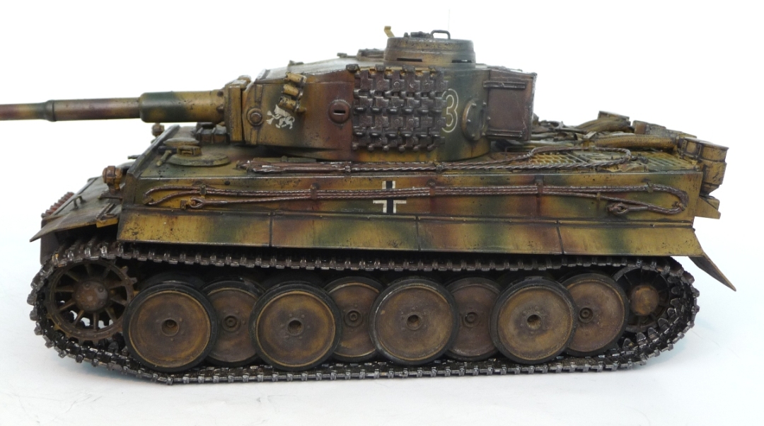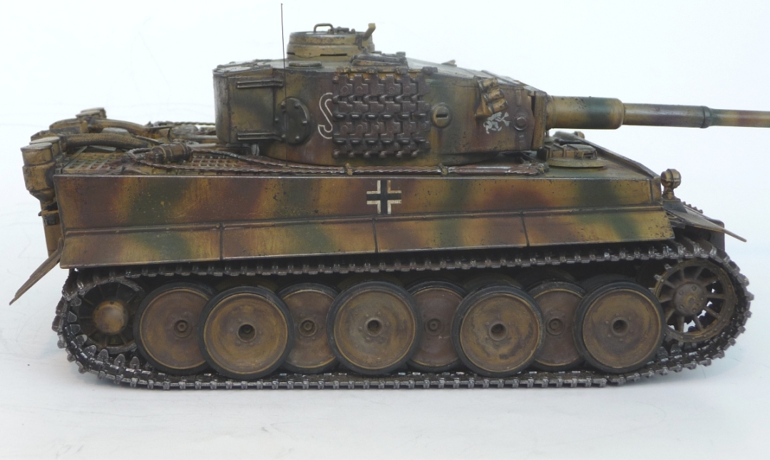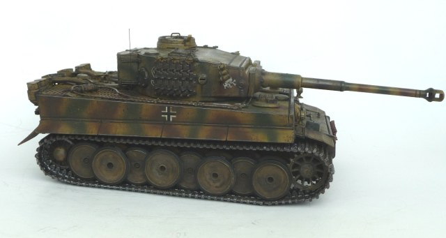 Модель незапланированная,да и не моя.Однокашник по военному училищу мои модели увидел,тоже заинтересовался этим делом.Купил,собрал ,покрасить попросил меня.По матчасти все основные косяки модели знаю,сборка-чистая изкоробка человека,первый раз собравшего модель,просьба по матчасти сильно не бить.Покрасил,вот результат.С тонировкой,на мой взгляд,малость намудрил.Окраска-грунтовка из строительного магазина за 107 руб.(не хуже грунтовки Тамия,но дешевле гораздо),акрил Тамия,лак матовый и полуматовый Тамия ,художественные краски,немного пигмента МИГ.Исторически модель не совсем корректно привязывать-этот Тигр больше на африканский похож,но эмблемы и окрас под Курскую битву,8 рота дивизии "Дас Райх".