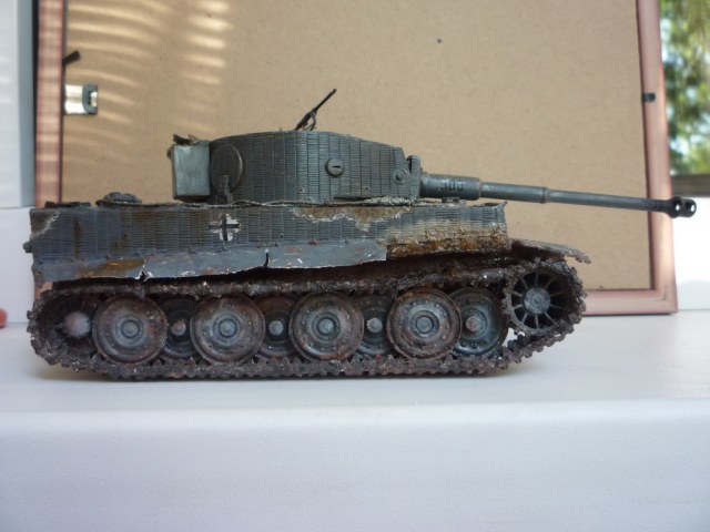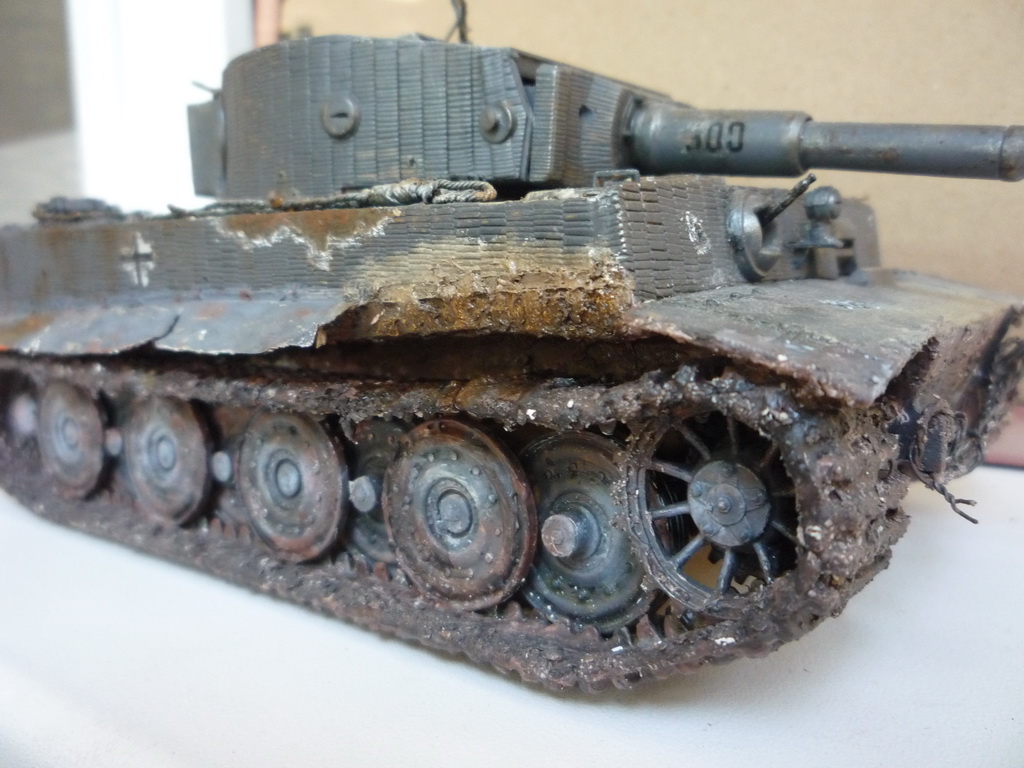 По окраске:сильно сомневаюсь,что поздний тигр мог быть окрашен в серый.Грязь на ходовой не понравилась абсолютно.Но это сугубо личная неприязнь к моделям,с замазанной вусмерть ходовкой.