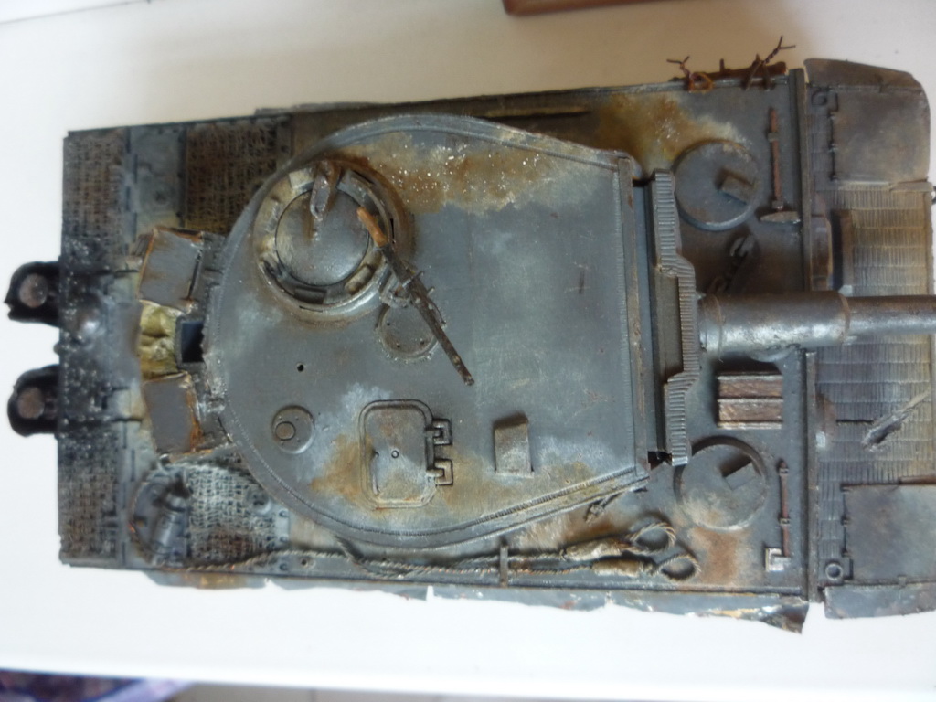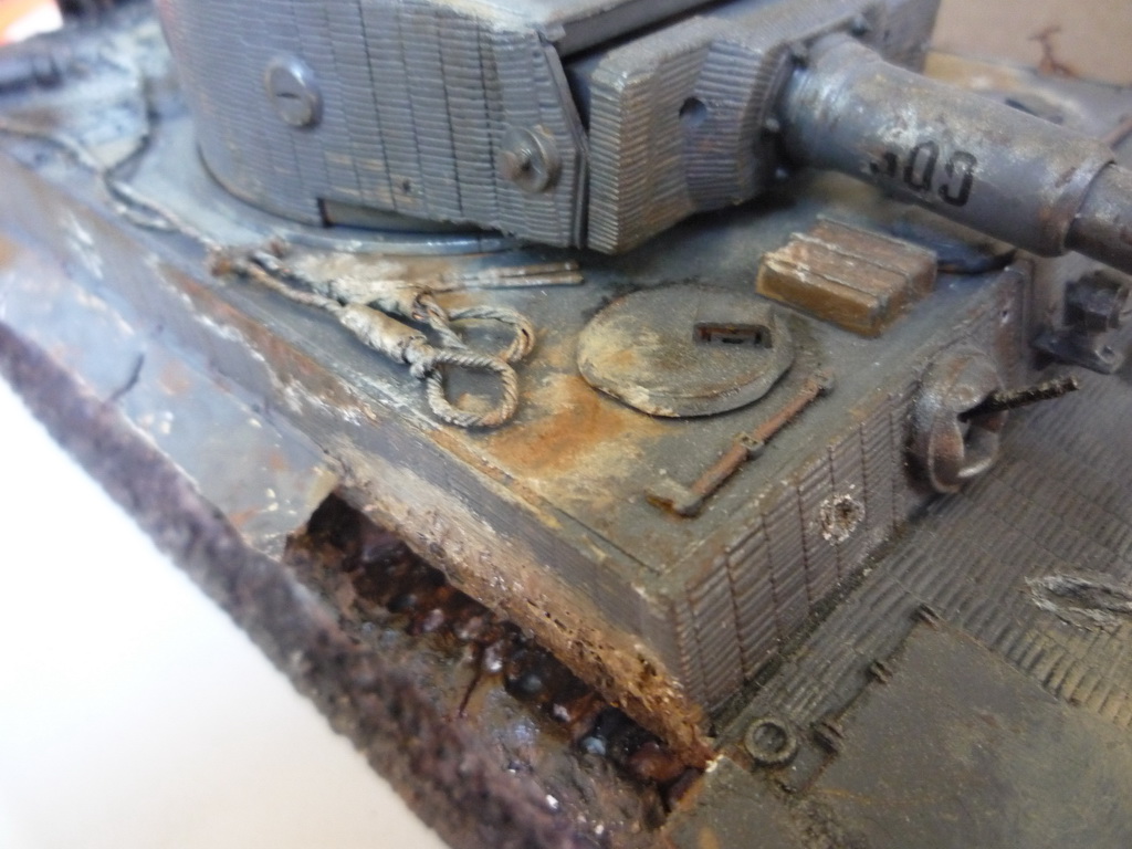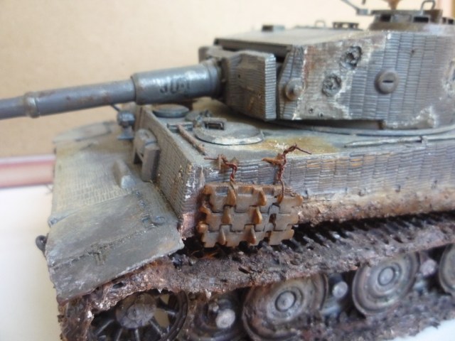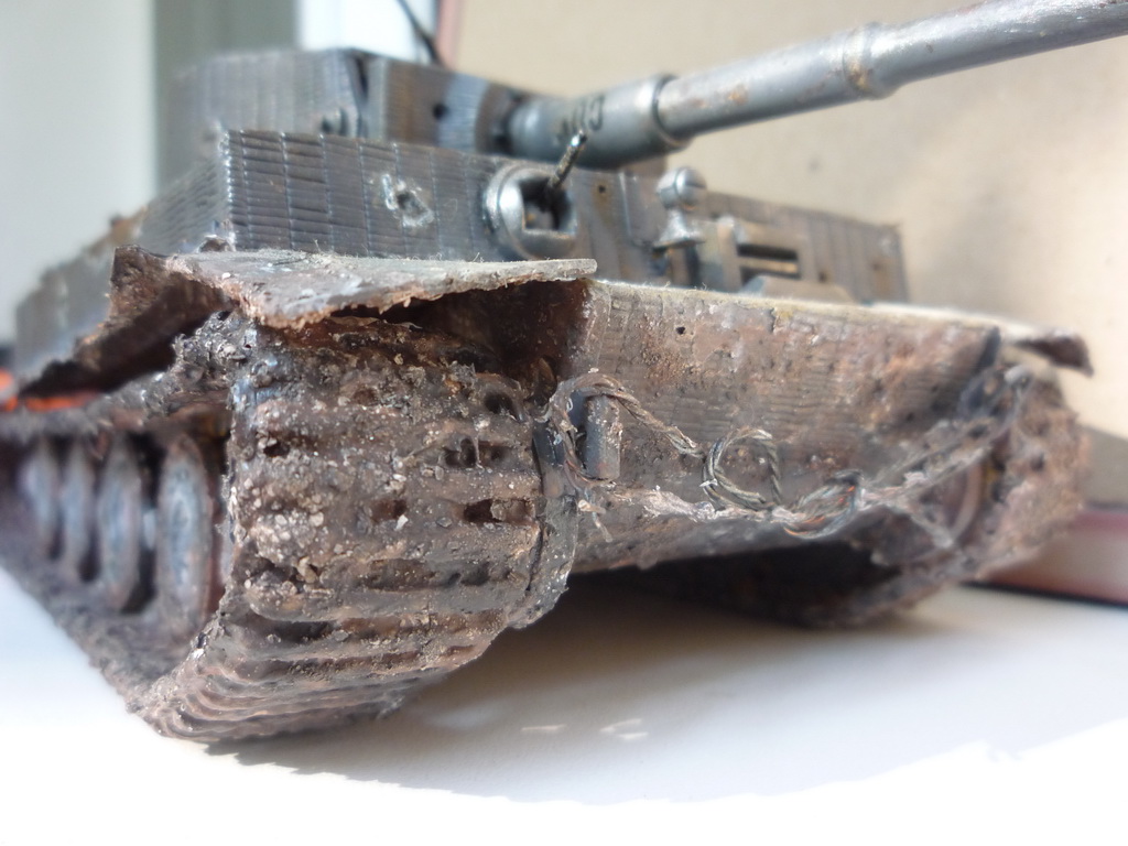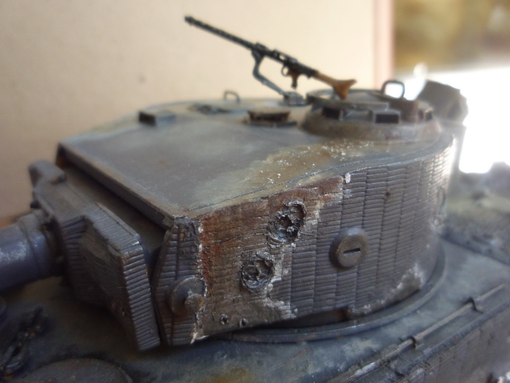 Следы попаданий понравились,сколы на циммерите-тоже.Только надо было на башне чуть подольше поскоблить циммерит.на месте крупного скола от двух попаданий проглядывают остатки насечки на пластике.