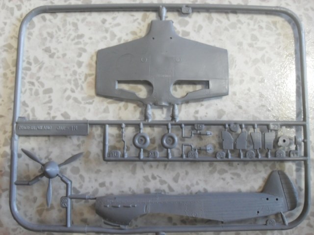 В наборе 2 литника серого пластика и 1 прозрачный. Качество пластика, вроде, ничего. Облой, царапины, утяжины присутствуют, но в меру. Даже с первого взгляда видно, что и детали придется подгонять. Расшивка внешняя, деталировка ниш шасси и кабины отсутствует, как таковая. С чертежами не сверял, но подозреваю, что матчасть хромает на обе ноги.