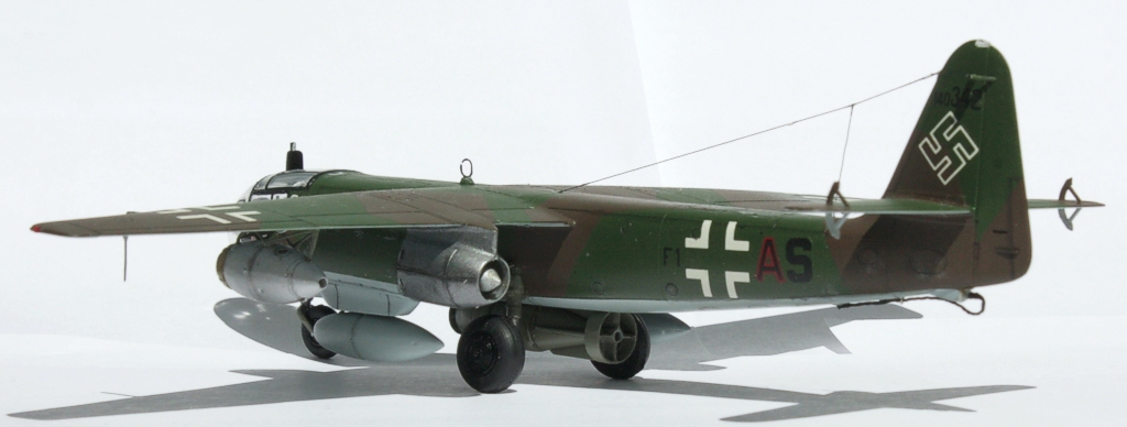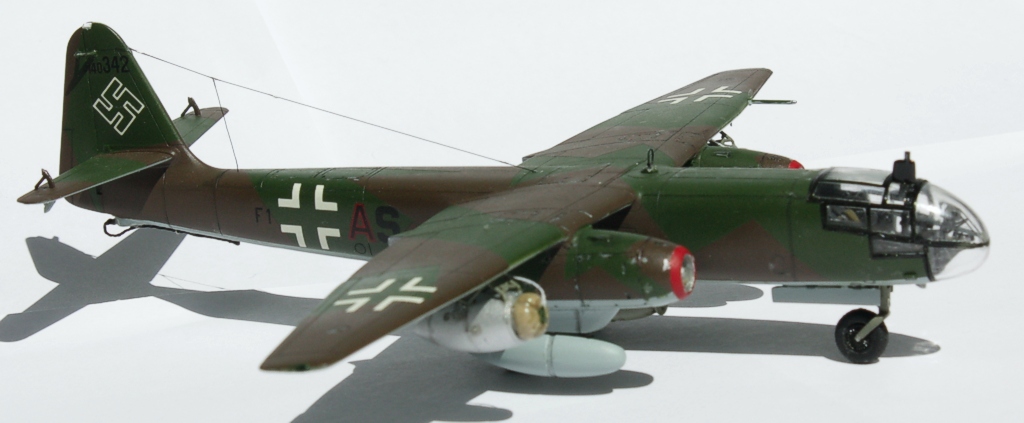На данном самолетё F1+AS (W.Nr.140342) летал оберфельдфебель Фридрих Брушлос (Owf. FriedrichBruchlos) из 8./KG 76, он погиб 9 марта 1945 г. при атаке моста Людендорфа в Ремагене (Remagen).