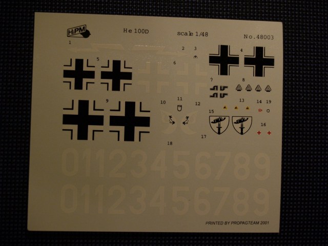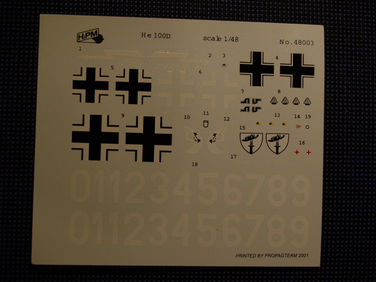 Heinkel He-100D - это пропагандистский истребитель, построено всего с десяток. Официально обозначался как He-113 и немецкая пропаганда изо всех сил стремилась создать впечатление, что он строится серийно и состоит на вооружении люфтваффе. В связи с чем 9 самолетов из агитэскадрильи часто фотографировали, меняя при этом номера, нанося эмблемы несуществующих частей (на декали - именно они) и даже знаки побед. Реально эти самолеты не воевали, но агитация сделала свое дело, в справочниках-определителях стран антигитлеровской коалиции He-113 числился и летчики даже докладывали о боях с ним.
