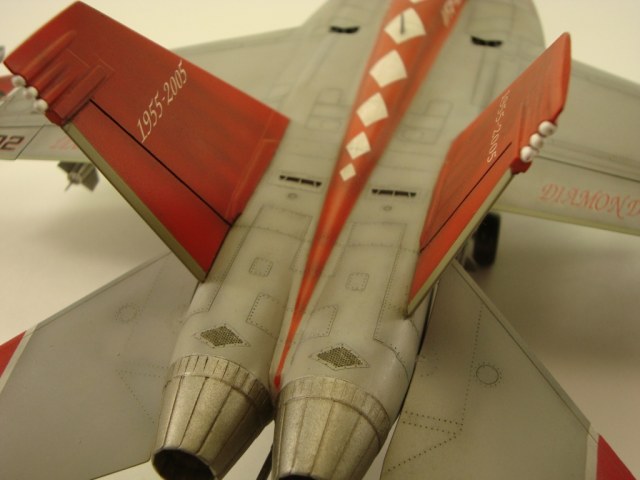 Хорош-хорнет! Тока блеск пилотов всё портит. Да и лучше снимать не в лайтбоксе, при дневном свете в ясную погоду. Гораздо наряднее было б. А что на такие юбилейные машины вешалось оружие?
