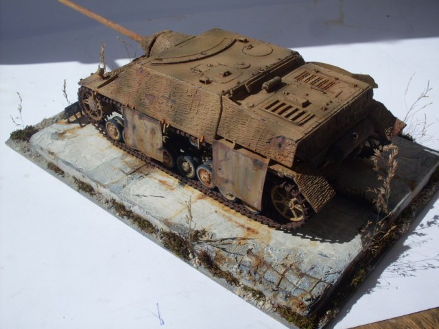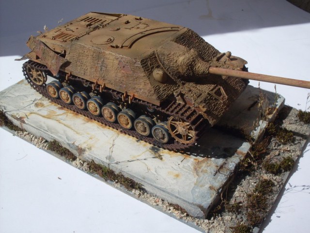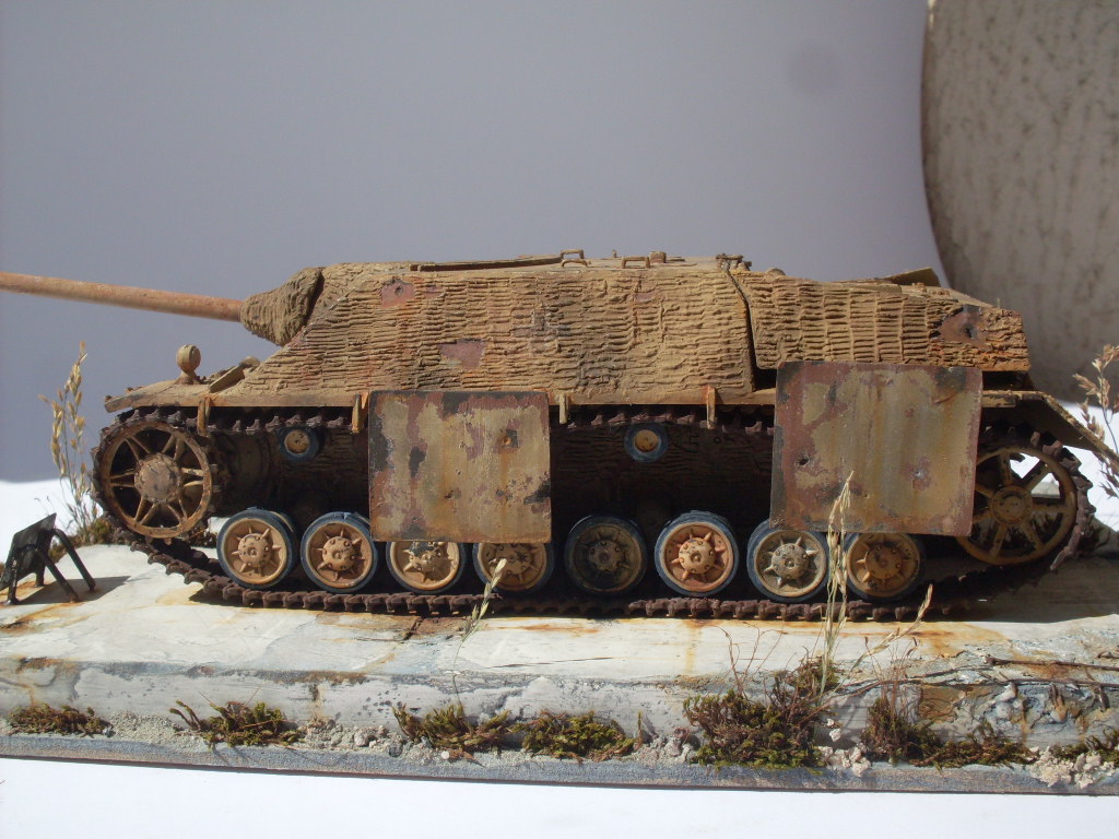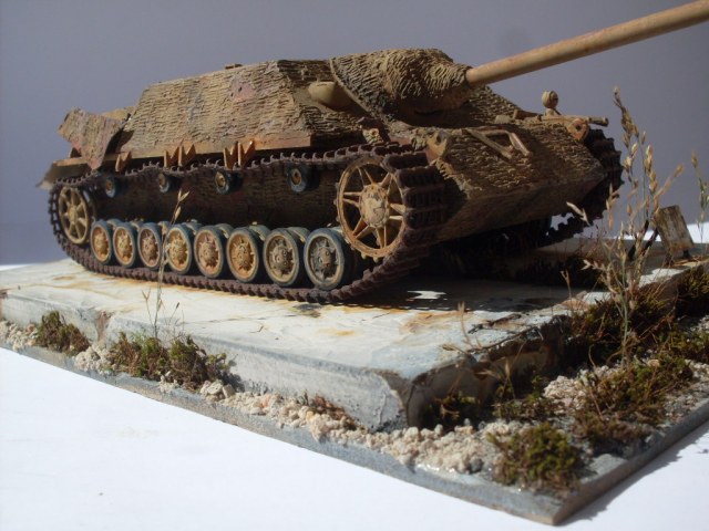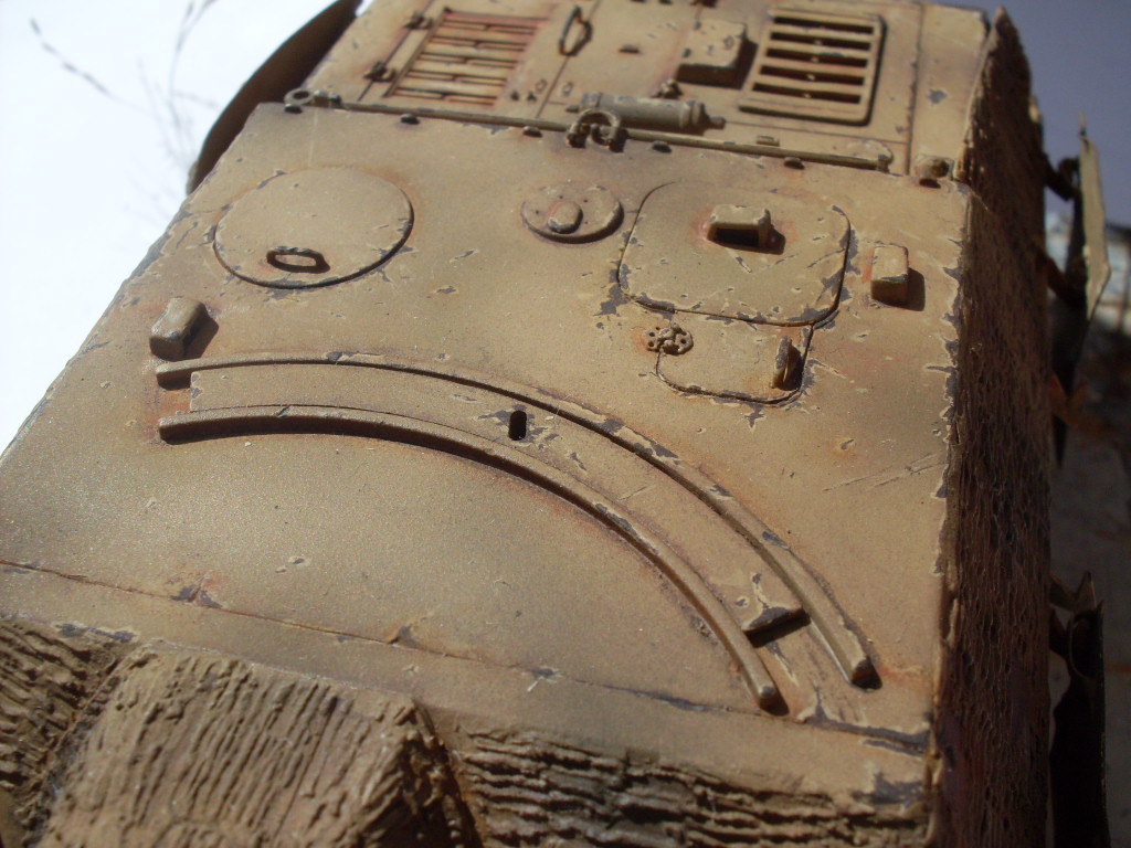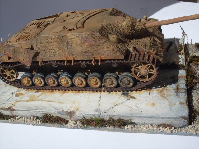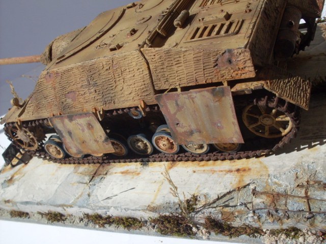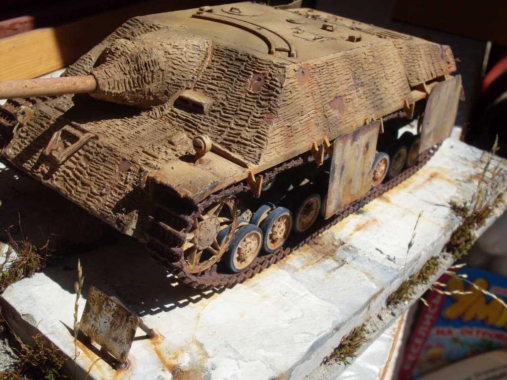 Ко всем уже сказанным хорошим словам присоединяюсь и хочу особо отметить гусеницы в старой ржавчине и старую резину на катках с сизым отливом. Автор попал в цвет стопроцентно.