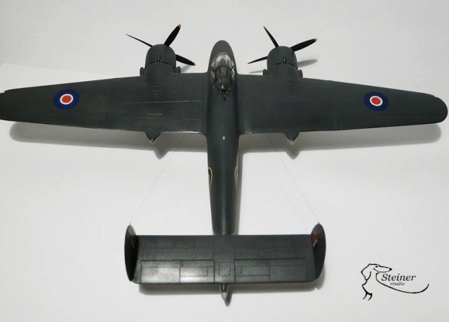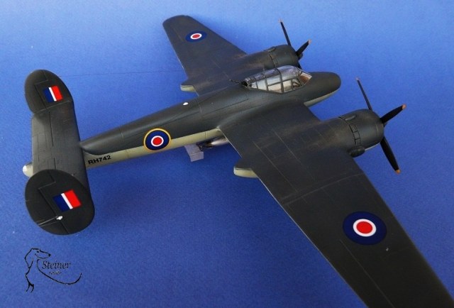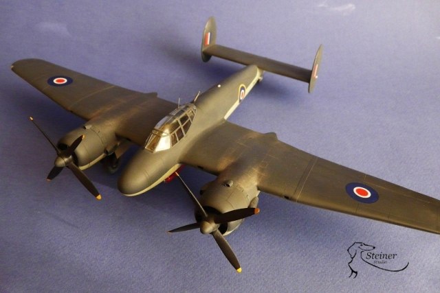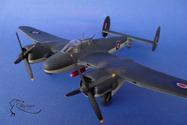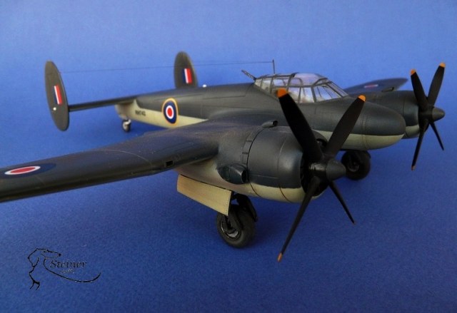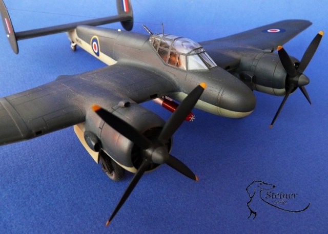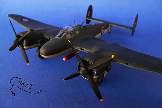 По кабине пришлось довериться инструкции. Еле разобрался с пушечными портами, почему они на модели открыты, а не по типу Бофайтера. Оказывается, произошло несколько аварий, связаных с разрывами снарядов в трубах удлиняющих стволы, и их открыли, наплевав на аэродинамику.