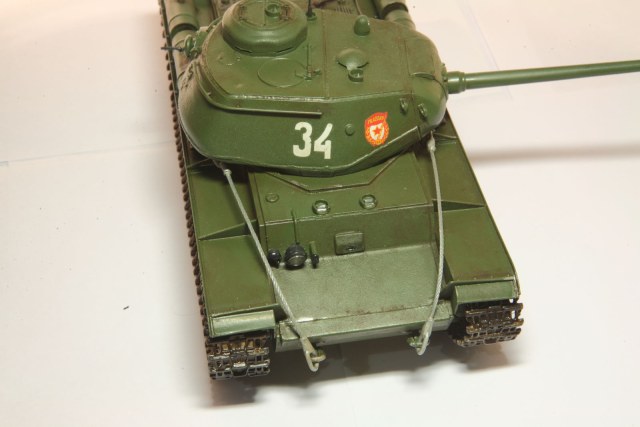 Неплохо получилось, танк как новенький, только с завода. Только на фото, кажется, что он блестит, как-будто соляркой натерли, наверное со вспышкой снимали? Да, еще троса не смотрятся, по-моему коротковаты, до и коуши почему-то не окрашены. Сами троса тоже надо было бы подтонировать. А так - зачет.