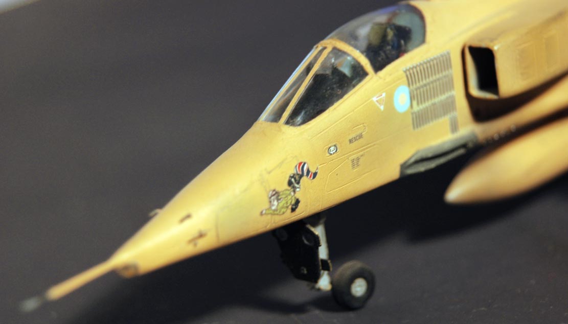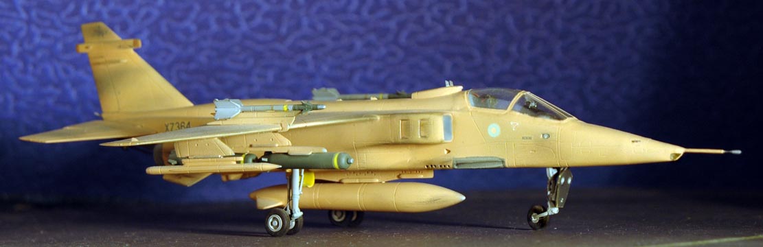 Красивый ягуарчик.Но нужно его очень хорошо ободрать.английские самолёты красились легкосмываеемой краской поверх основного камуфляжа и уже через несколько вылетов они имели очень ободраный вид .