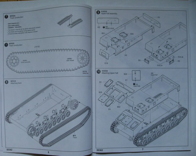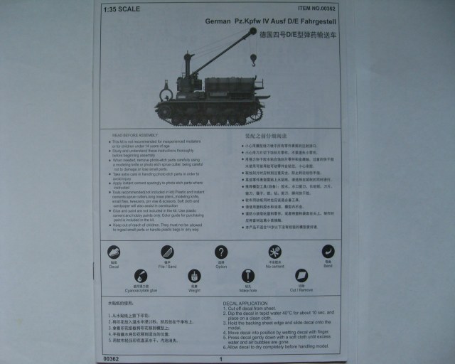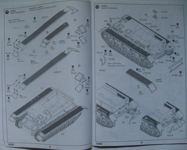 В плотной коробке, поверх всех литников, находится картонная рамка с шестью платами травления. На первый взгляд оно довольно толстовато, но как поведёт себя при сборке не могу сказать. Инструкция представлена на 20 страницах, в виде книжки формата чуть меньшего чем А4, отдельный лист со схемой окраски. Декалей в наборе нет.