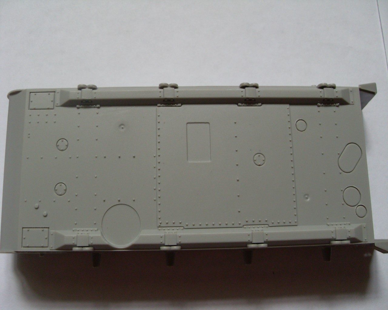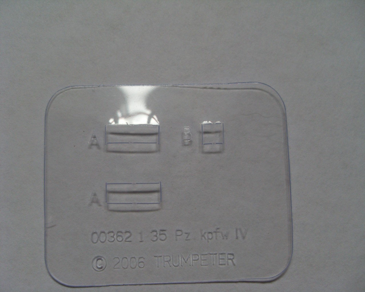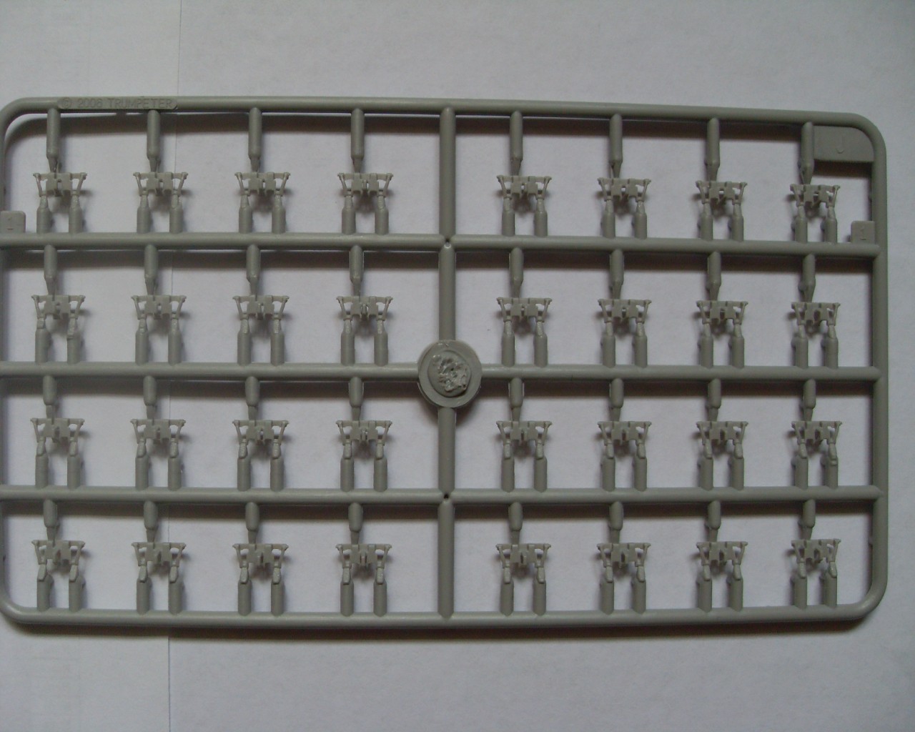 Литники с самой моделью представлены в количестве 17 штук, из которых 7 литников с наборными траками, два одинаковых с элементами ходовой части, два со снарядами и два одинаковых с различными элементами. Ванна корпуса представлена отдельной деталью.