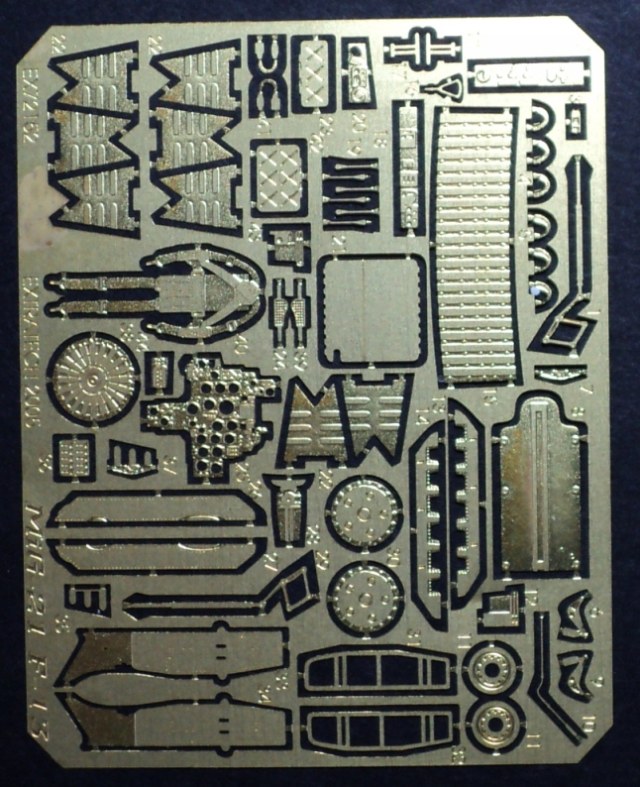 Травление упаковано в пакетик со стильной чёрной подложкой. Металл толстый, но мягкий (по сравнению с Эдуардом). Толщина пластики больше, чем у ACE и Part, но достаточно гибкая. В набор входят детали кокпита, бомбы и шасси, а также приборная доска на прозрачной плёнке.