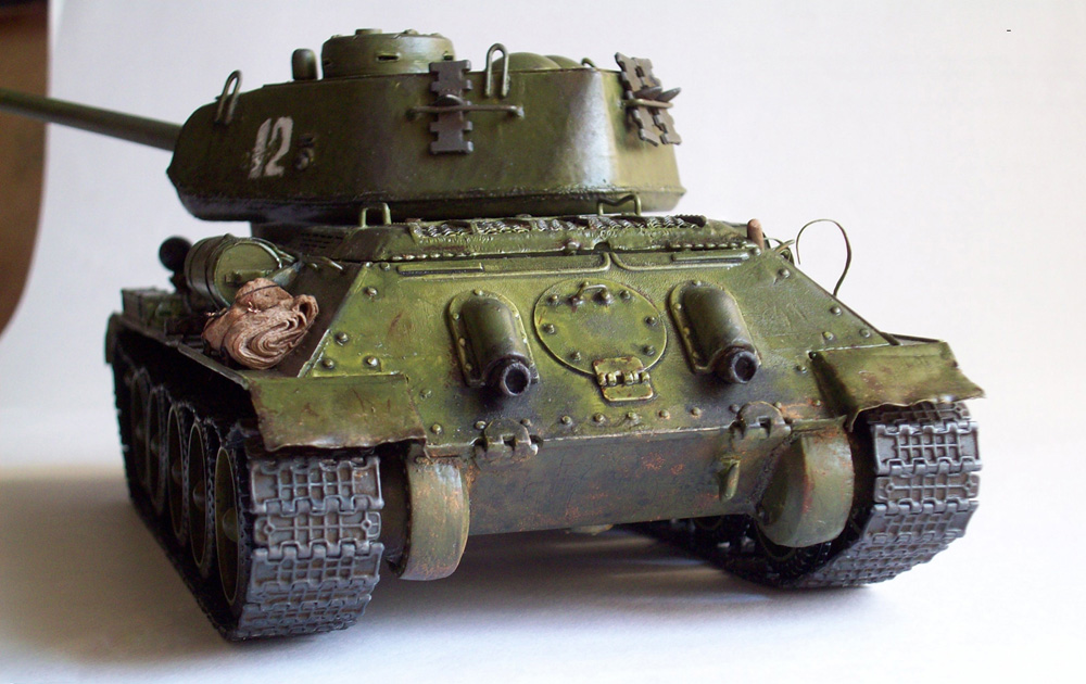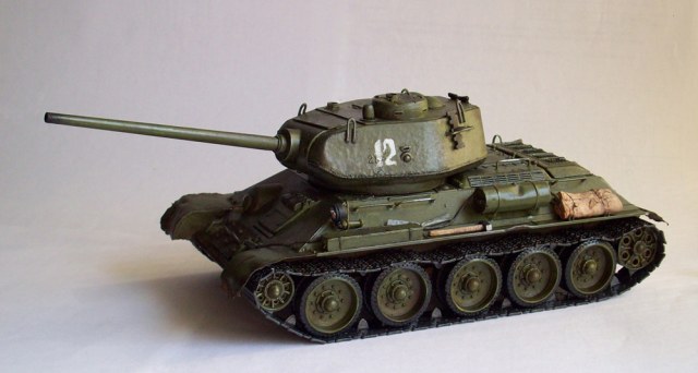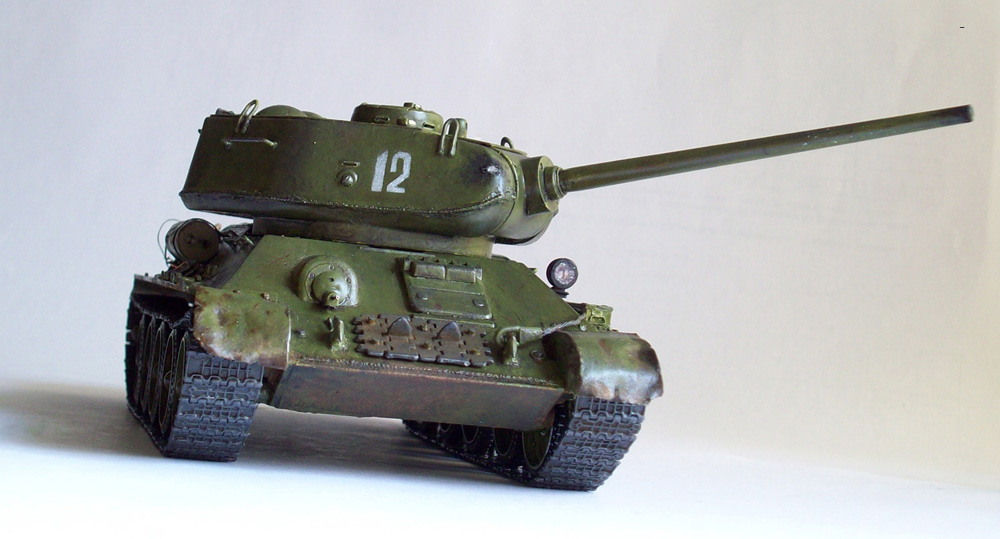 Здравствуйте товарищи. Выставляю на ваш суд мою первую серьезную модель. Были лет 5 назад самолетики- "сборказачас", но они не в счет. Так вот, вашему вниманию вариация на раннюю 85-ку. Собирал 5 месяцев, не спеша... себе в удовольствие. Бегунок за матчасть можно сразу ставить на ноль))) Но собственно моей целью было просто хорошо собрать танк. Как получилось- судить вам. Лично мне- нравится, хотя не без косяков...