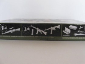 Здравствуйте уважаемые каропчане.Когда я увидел на полке знакомого мне магазина этот набор я несмог пройти,ведь это Gen2 и по такой дещовой цене!(220руб).Содержимое поразило:фототравление,декали,четыре больших литника и еще пять на картонке с логотипом драгона.На всем огнестрельном оружии просверлен ствол и прицел,также отдельно затвор,на фауспатроне два варианта курка один в боевом положении,другой на предохранители.В наборе есть два sTg-44 и магазины к ним,автоматическая винтовка гевер-43 с вынутым затвором,два автомата MP-40 тоже в разобраном виде и разные модели пистолетов:две ракетницы,одна из них разряжена,вальтер(поздний и ранний),люгер и целая куча магазинов к ним.