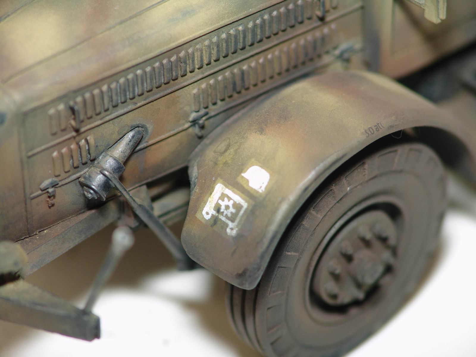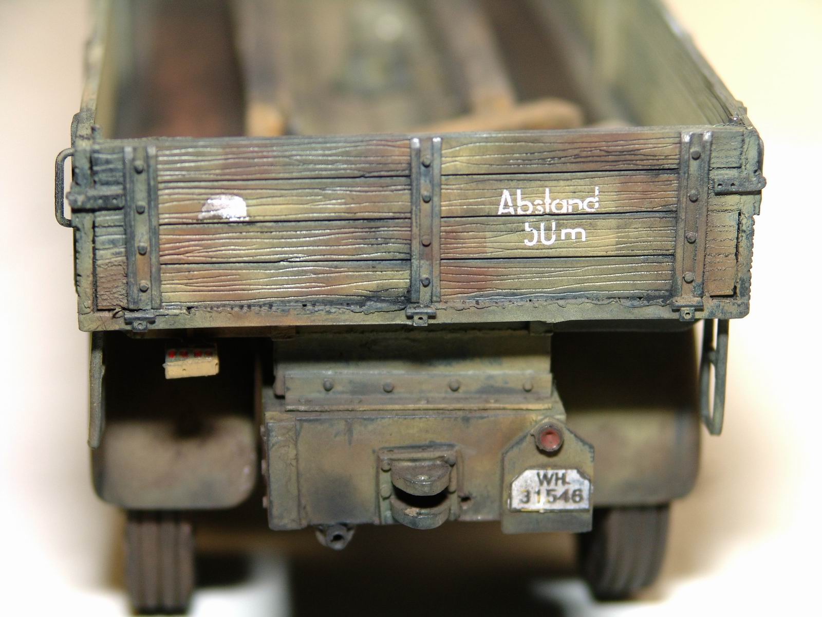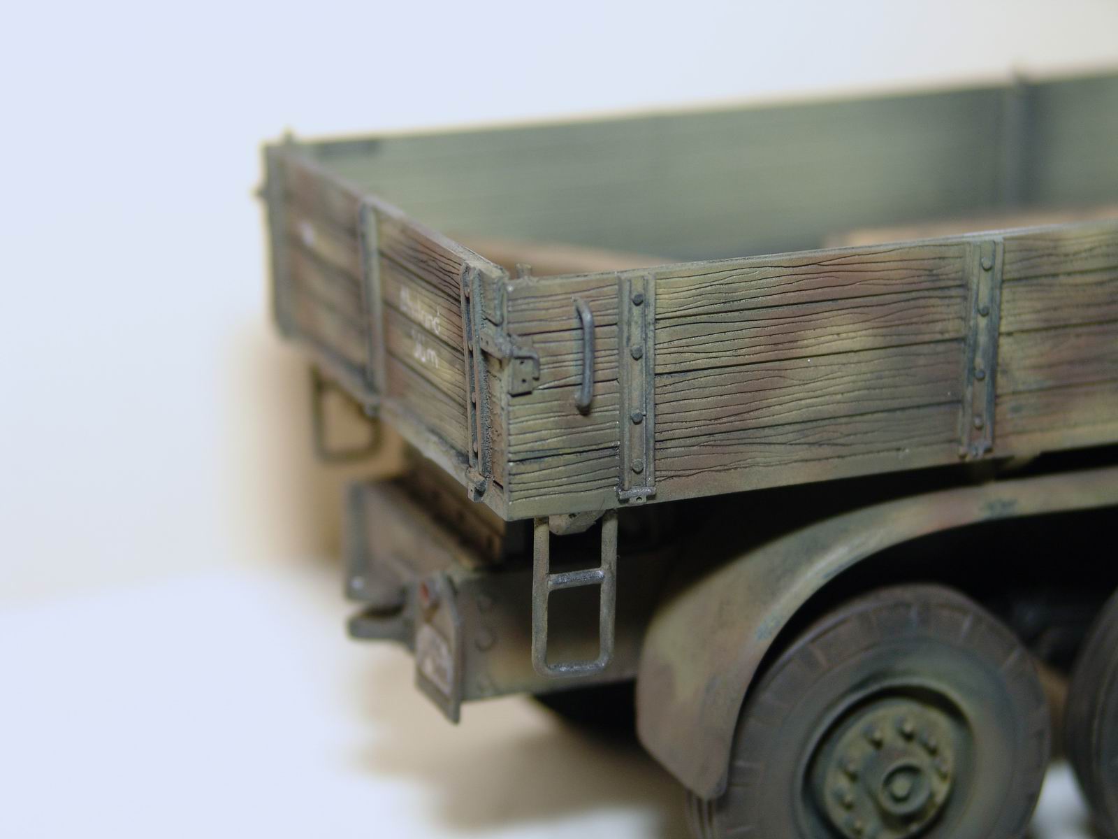 Спасибо Владислав, но тут нет никакой смывки, только сухая тонировка. Текстуру дерева спецом не высветлял, грузовик же почти в свежем армейском камуфляже, не успел бы так облупиться)