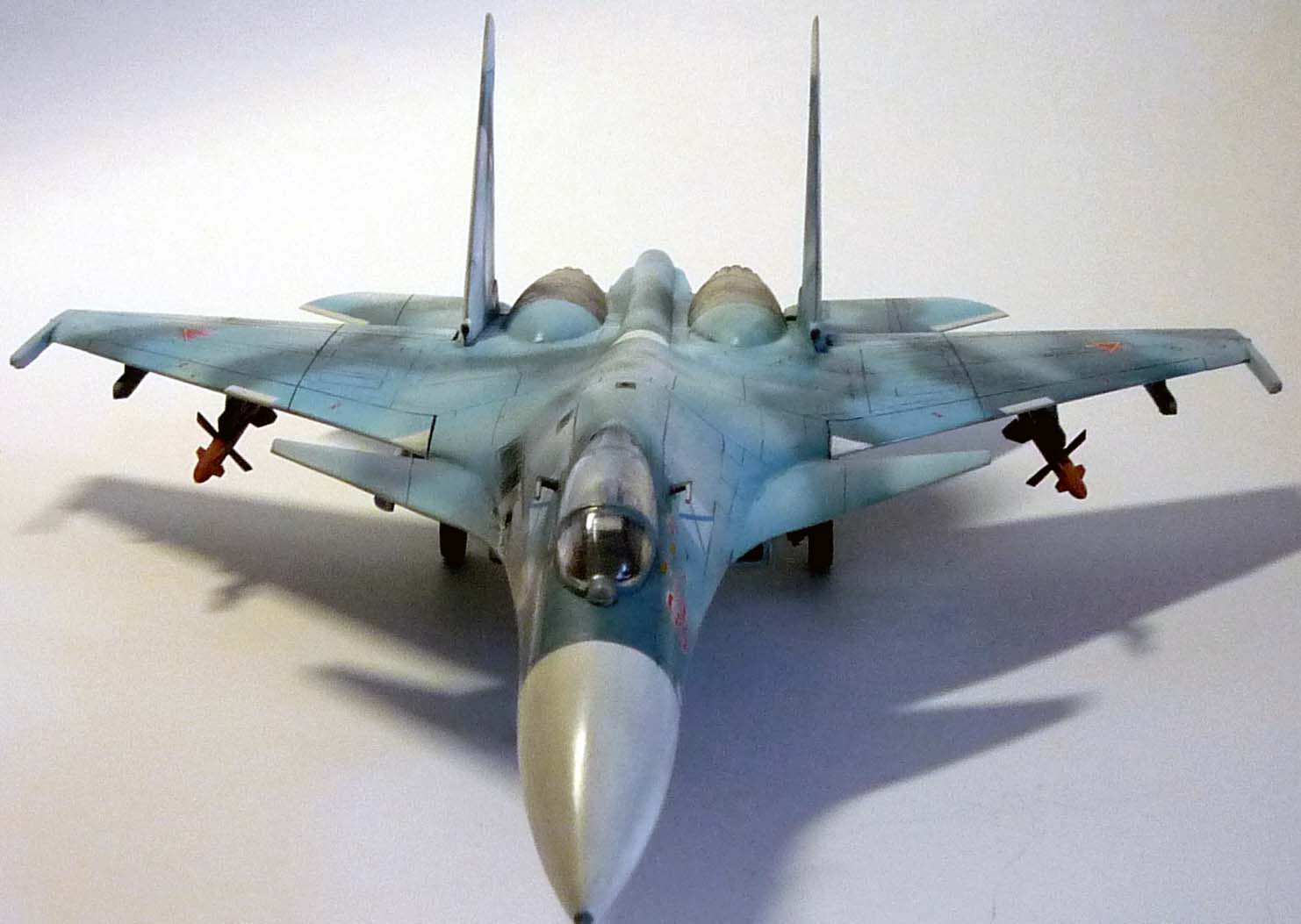 Попытка Звезды при помощи непонятного ПГО сделать из Су-27 палубный Су-33 не удалась.Я пробовал скрестить Су-33 и Су-35 Звезда и Беркут,что из этого вышло можно посмотреть в галерее.Сопла переделывал,ПГО сделал подвижным.Модель Звезды отдаленно напоминает Су-33.За старание 5.