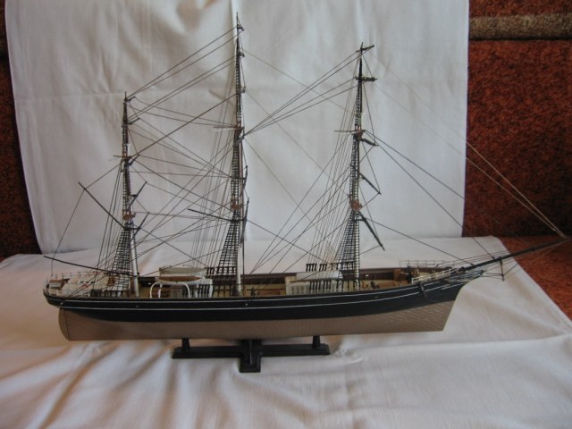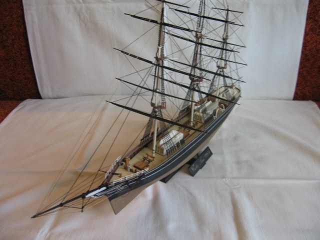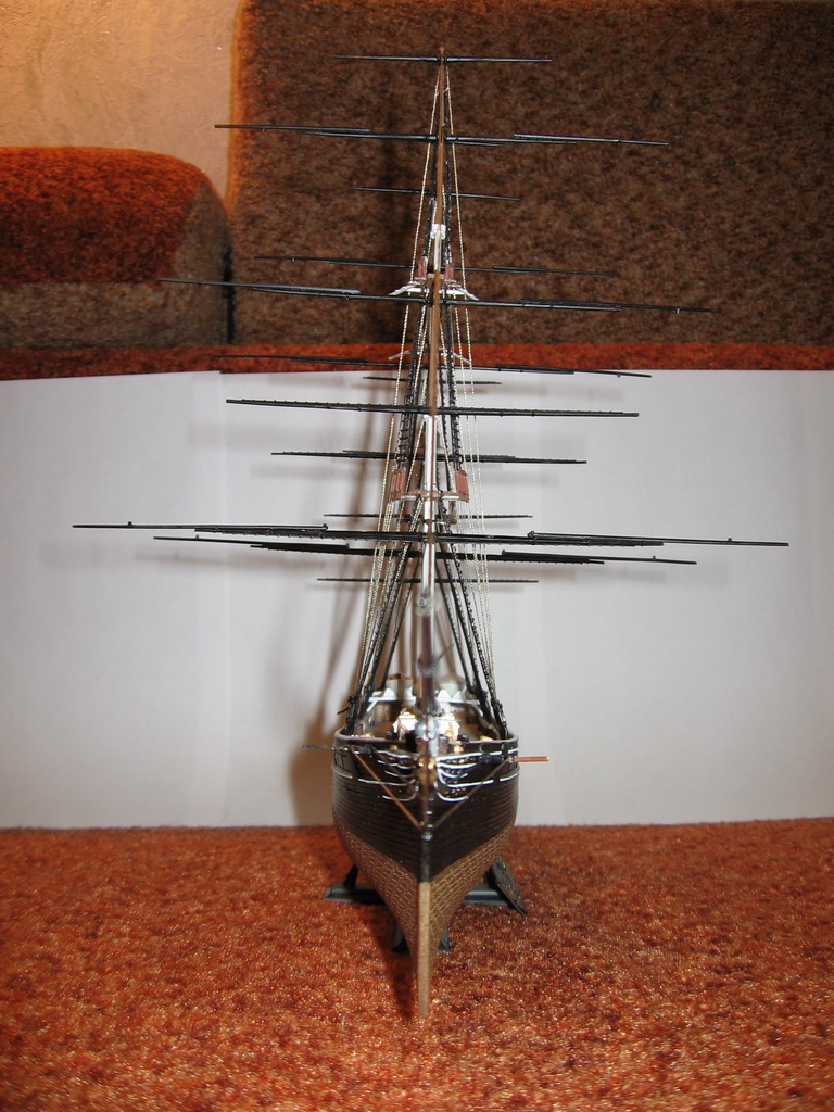 Наконец, после долгого перерыва работы над моделью были возобновлены с главным изменением в планах: он будет доделываться без парусов по ряду причин. Во-первых, "великий влом". Во-вторых, уже упомянутая хрупкость. Велик риск повредить и поломать то, что уже есть, ставя "простыни" и ещё более великий риск – помывка. Как я уже говорил, даже голые реи отваливались, а уж с такой площадью приложения силы, как паруса… В-третьих, достижение сходства с оригиналом, тем видом, который имел клипер до своей безвременной кончины в пламени халатности.