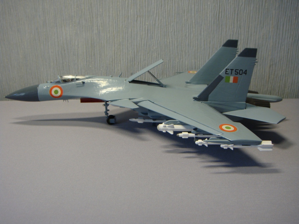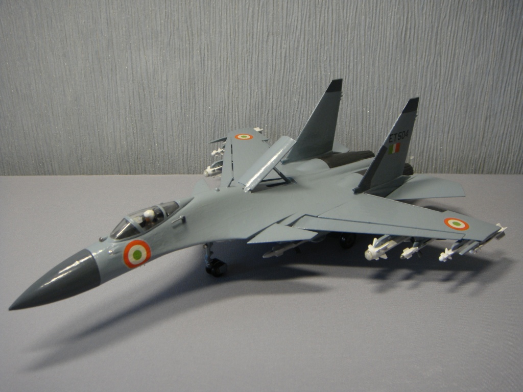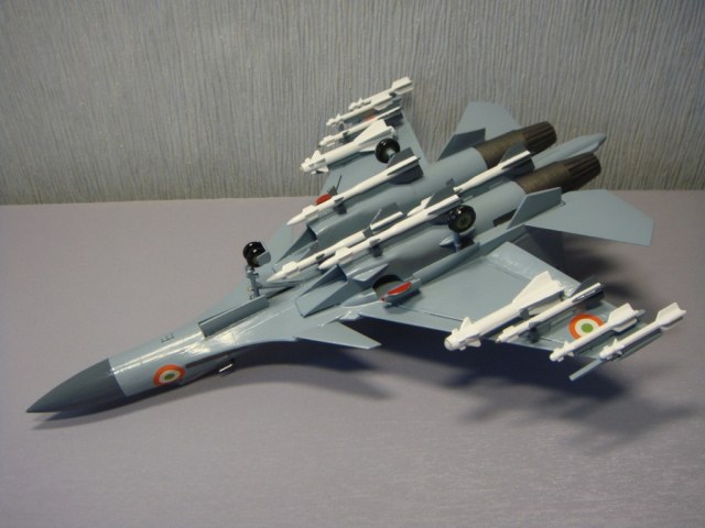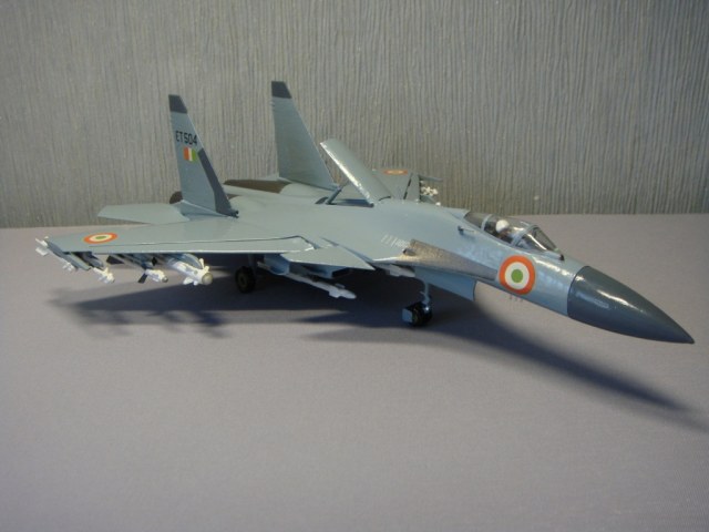 Какая порой у моделей бывает трагическая и счастливая судьба. Это – моя вторая модель, которую только что коренным образом реставрировал. Как то я выставлял первоначально сделанный тот желто-коричневый Ужас. У ВВС Индии нет Су-37, есть Су-30 МКИ, но, прикинув, какие есть декали в запасе, и чтобы не выкидывать эту модель в мусор, перекрасил, чтобы хоть на что-то была похожа, и, думаю, что в песочнице займет достойное место. Выставляю еще и потому, что пока не видел «сушек» ВВС Индии на каропке.