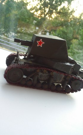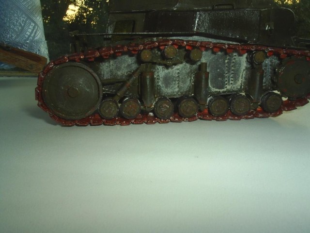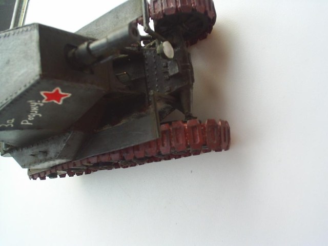 В общем дособирал сей сарайчик, покрасил. Как чувствовал, что с покраской плохо выйдет. Ну вот не умею я красить.. Может модели непокрашенными оставлять?Так как ни одной фотографии этой машины нет(не построили её советские конструкторы), то позволил себе некоторые вольности в покраске. Люди давно играющие в WoT помнят надпись "За Родину!" на башне КВ, вот я и решил ее и сюда воткнуть. Вроде органично смотрится